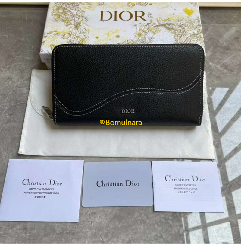[스페셜오더]DIOR-2ADBC3 디올 블랙 카프스킨 SADDLE 지퍼 장지갑 20cm
