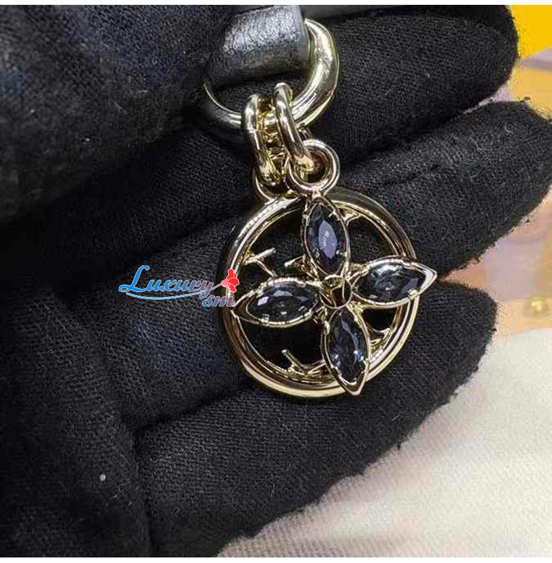 에 크리스탈로 장식 한 모노그램 플라워 참과 LV