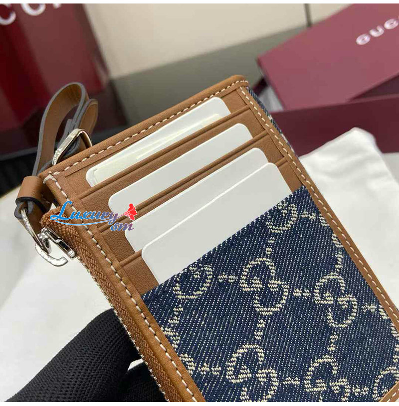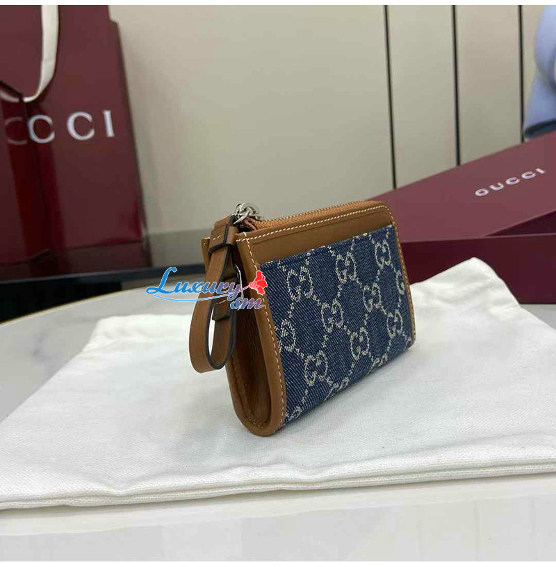 [스페셜오더]GUCCI-821804 4243 구찌 블루 데님 GG 엠블럼 지퍼 카드 케이스