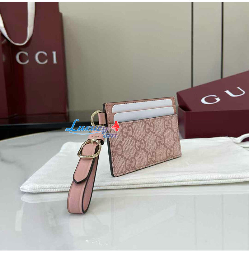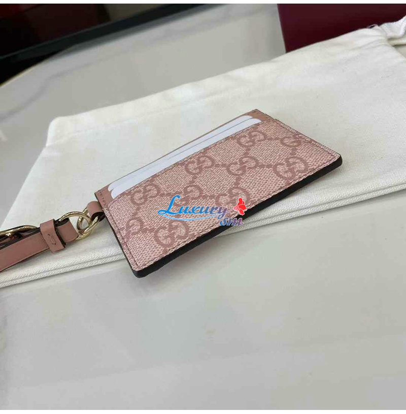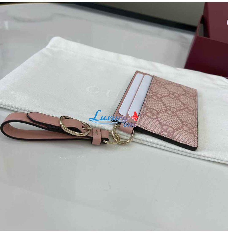 [스페셜오더]GUCCI-819121 8459 구찌 핑크 GG 엠블럼 스트랩 카드 케이스