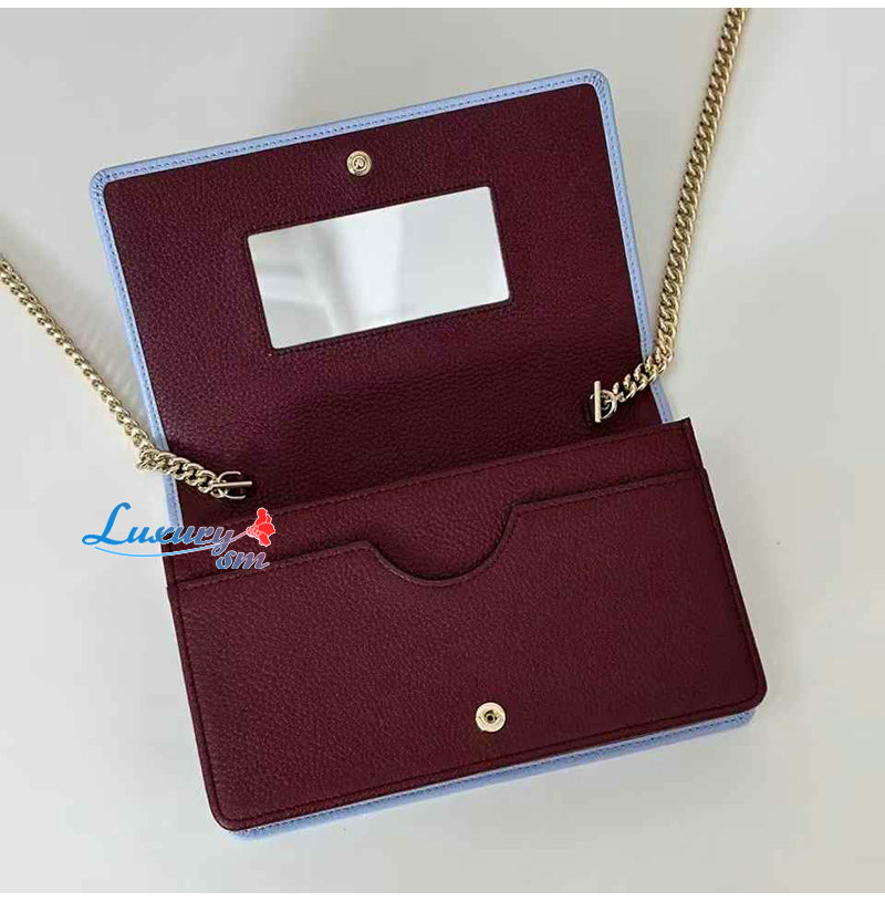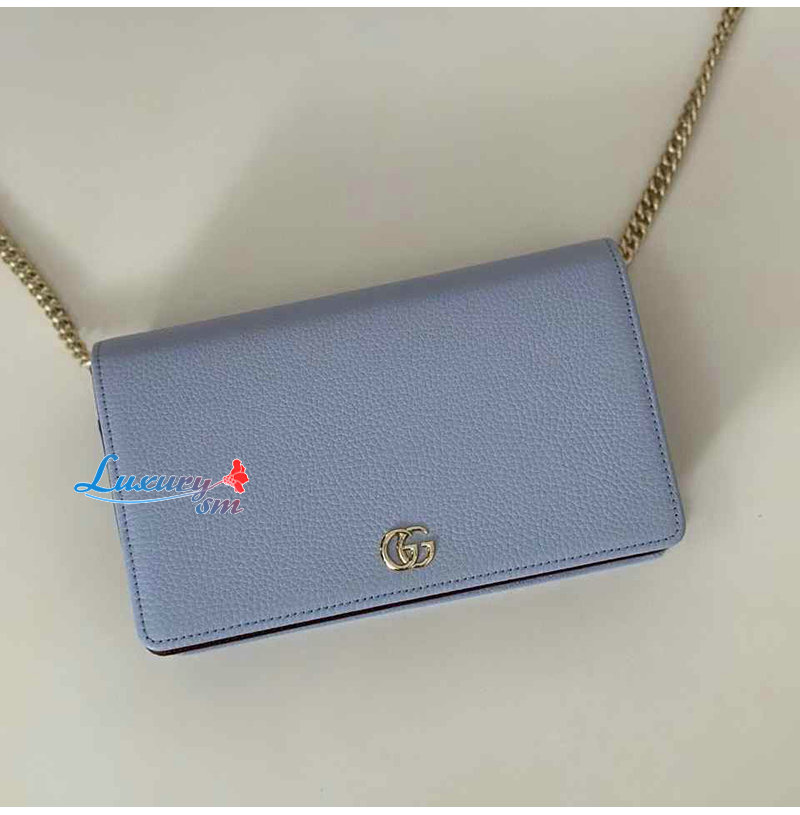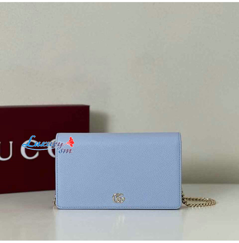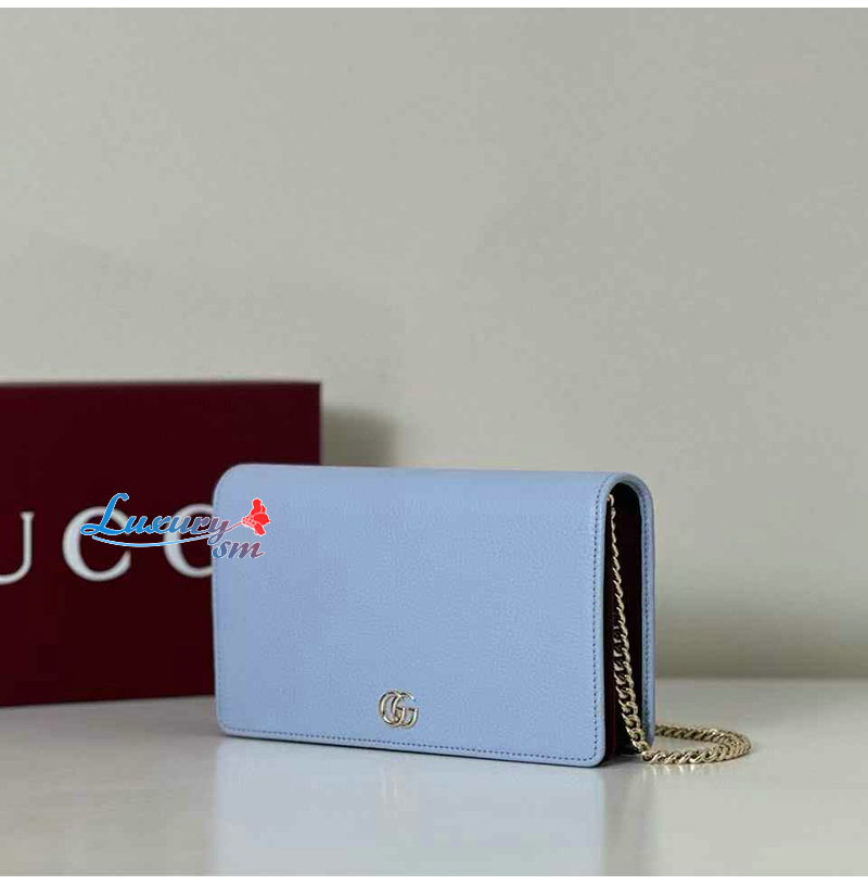 [스페셜오더]GUCCI-497985 4928 구찌 GG 마몽 페일 블루 가죽 체인 지갑