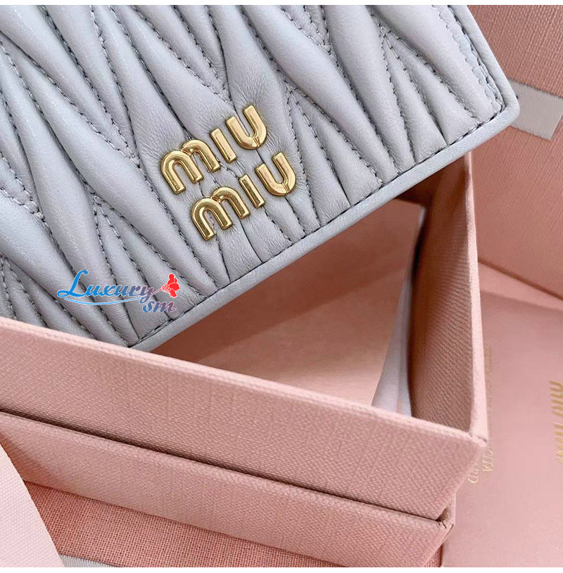 [스페셜오더]MIUMIU-5MV204 미우미우 펄 그레이 마테라쎄 나파 가죽 반지갑