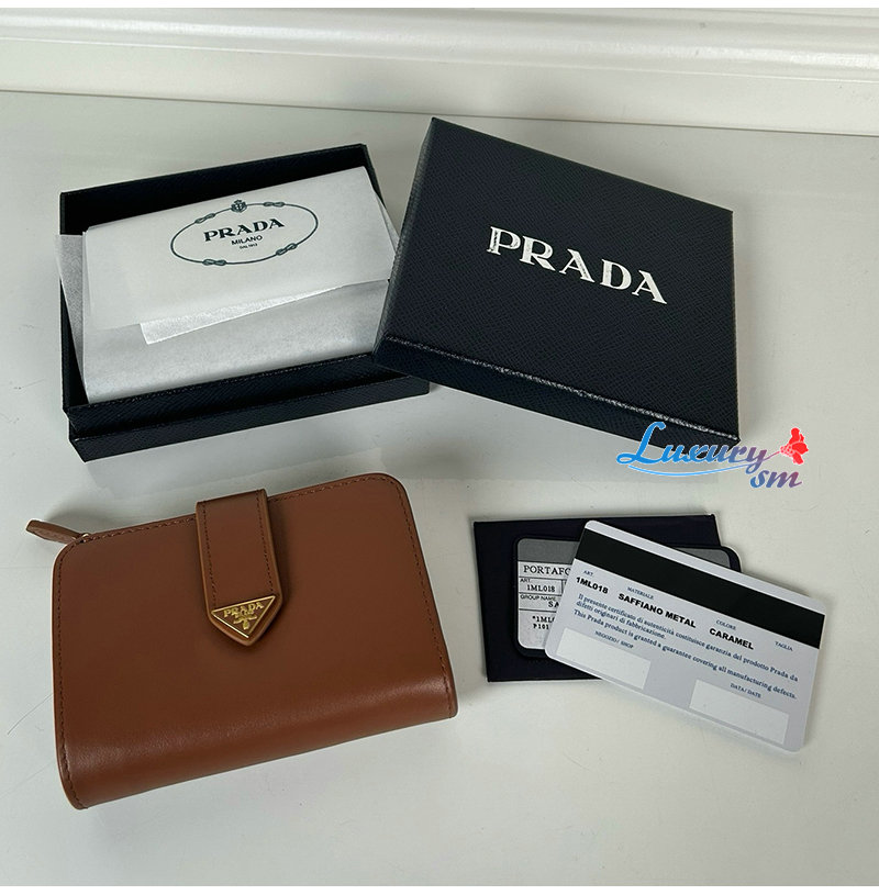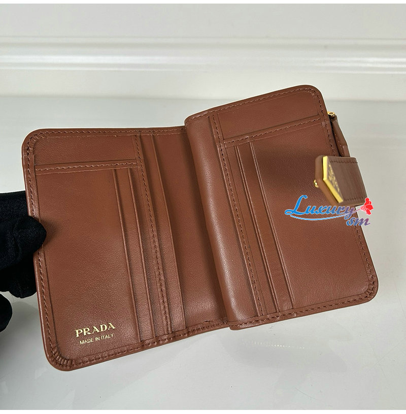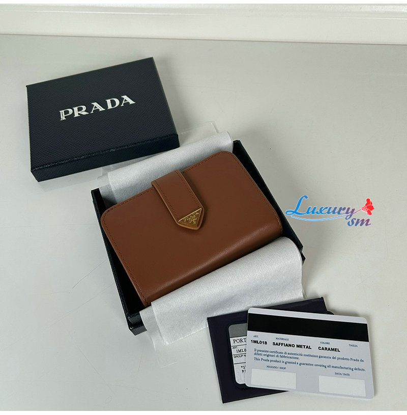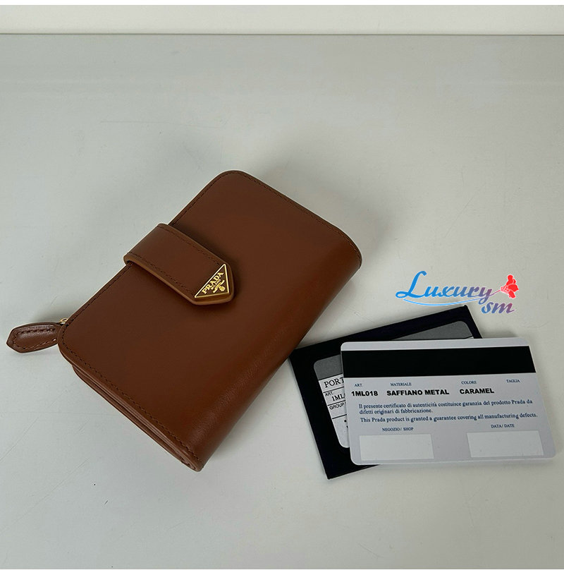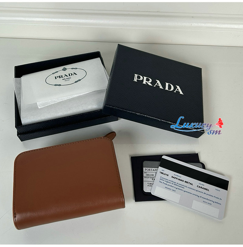[스페셜오더]PRADA-1ML018 프라다 접이식 가죽 반지갑 브라운 여성용