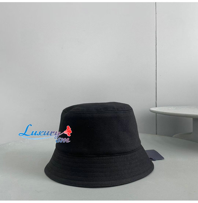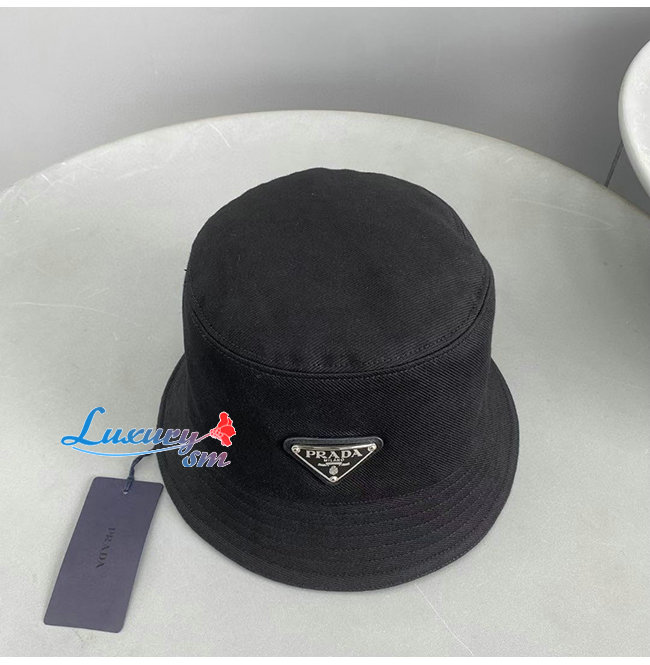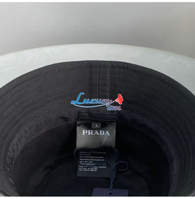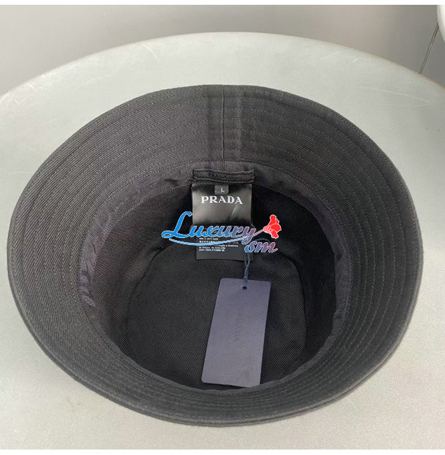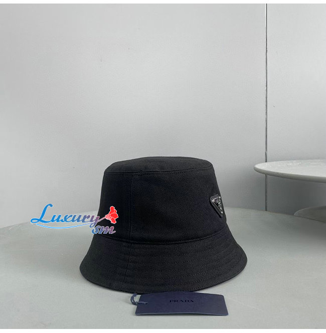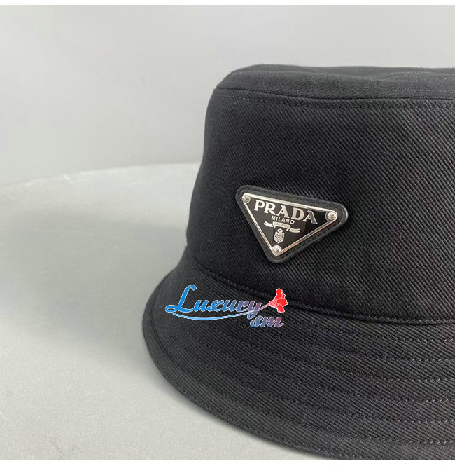 PRADA-10208 프라다 블랙 코튼 트라이앵글 로고 버킷 햇 남여공용