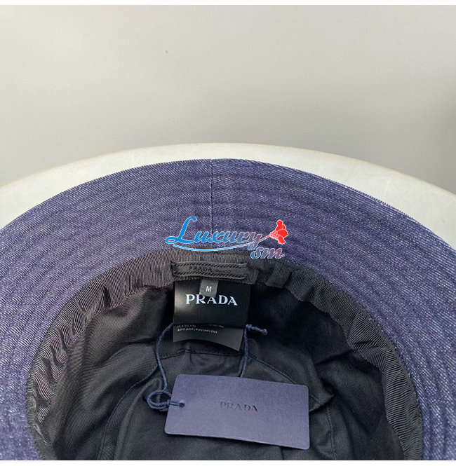 PRADA-10209 프라다 네이비 데님 트라이앵글 로고 버킷 햇 남여공용
