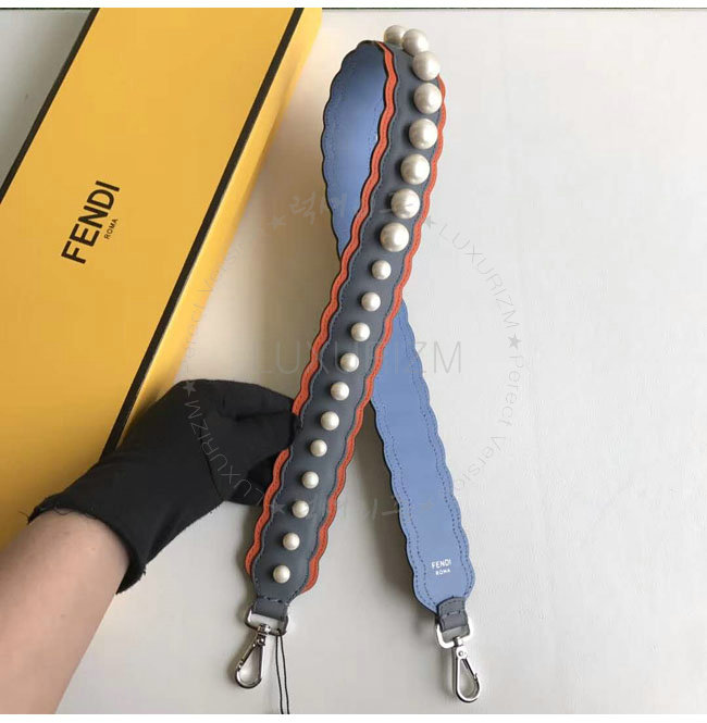 [스페셜오더]FENDI-8AV077 펜디 송아지 가죽 진주 트리밍 블루 스트랩 유