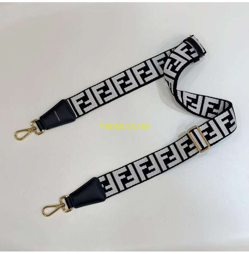 FENDI-8AV386 펜디 블랙/베이지 FF 모티프 리본 숄더 스트랩 미니 스트랩 유