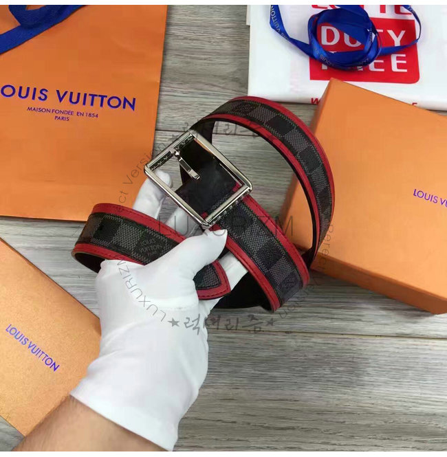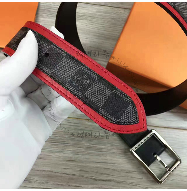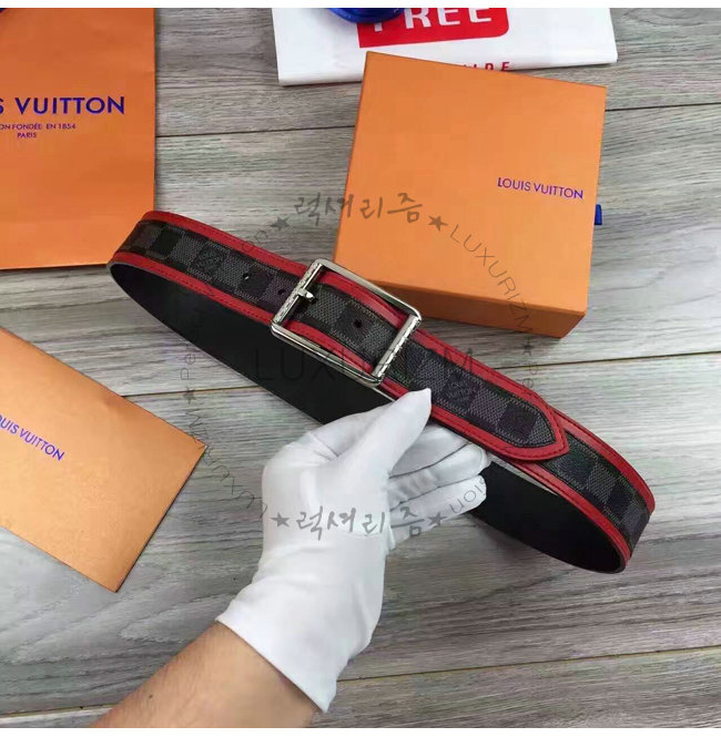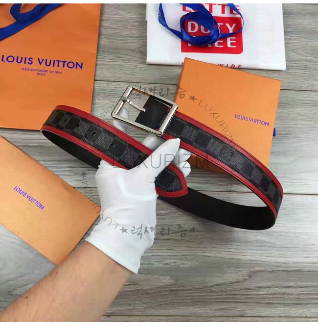 #홍콩명품 럭셔리즘 루이비통 남성벨트 스페셜오더LOUIS VUITTON-M9005S 루이비통 다미에 그라피트 리베르소 벨트 레드.