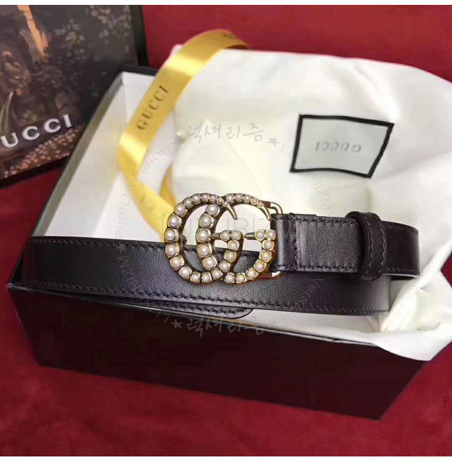 [스페셜오더]GUCCI-476342 8681 구찌 블랙 가죽 펄 더블 G 버클 가죽 벨트 2cm