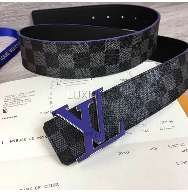 아이코닉한 LV이니셜 버클에 블루 래커로 정교하게 상감 세공한 리버서블