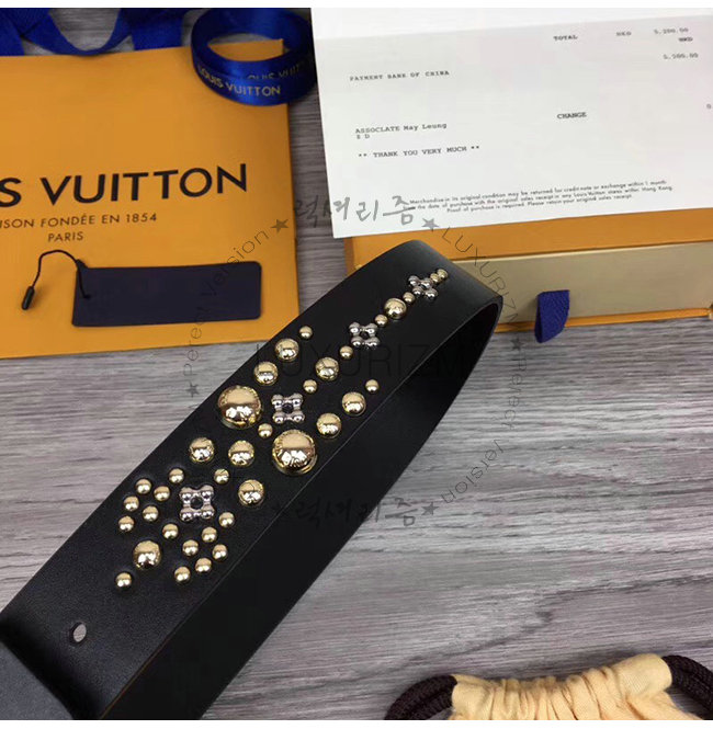[스페셜오더]LOUIS VUITTON-M0085W 루이비통 블랙 송아지 가죽 LV 아이코닉 벨트 35MM