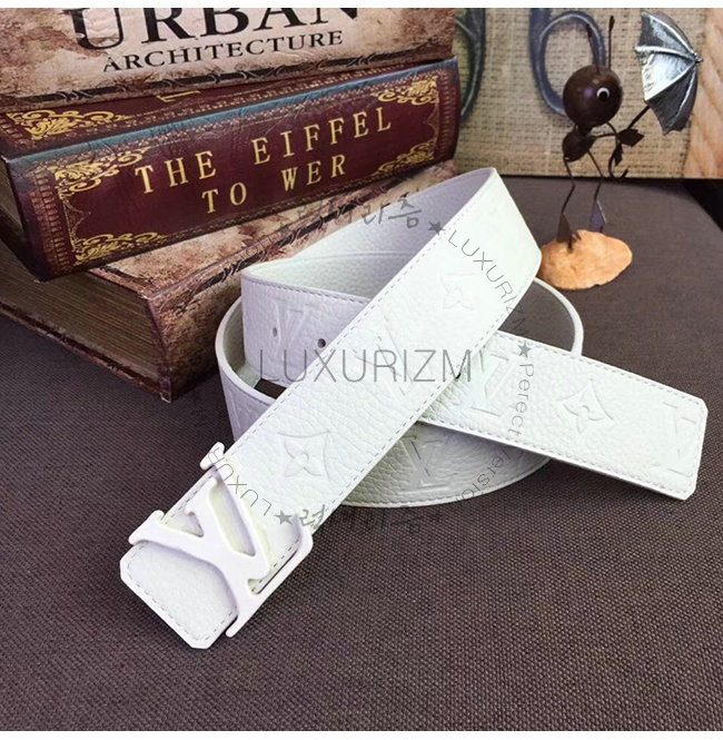 LOUIS VUITTON-MP235U 루이비통 화이트 모노그램 토리용 가죽 LV 셰이프 40MM 벨트