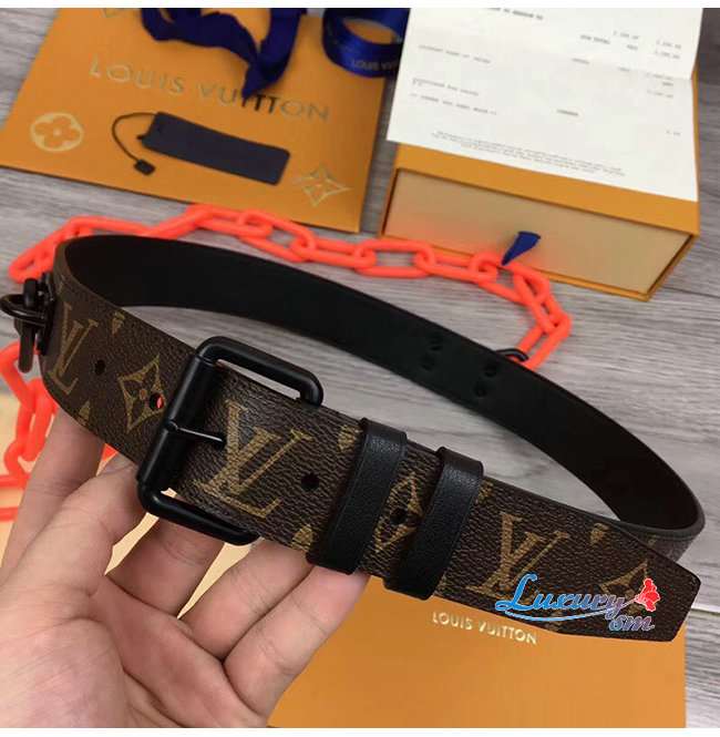 LOUIS VUITTON-MP058S 루이비통 느와르 모노그램 시그니처 체인 벨트 35MM