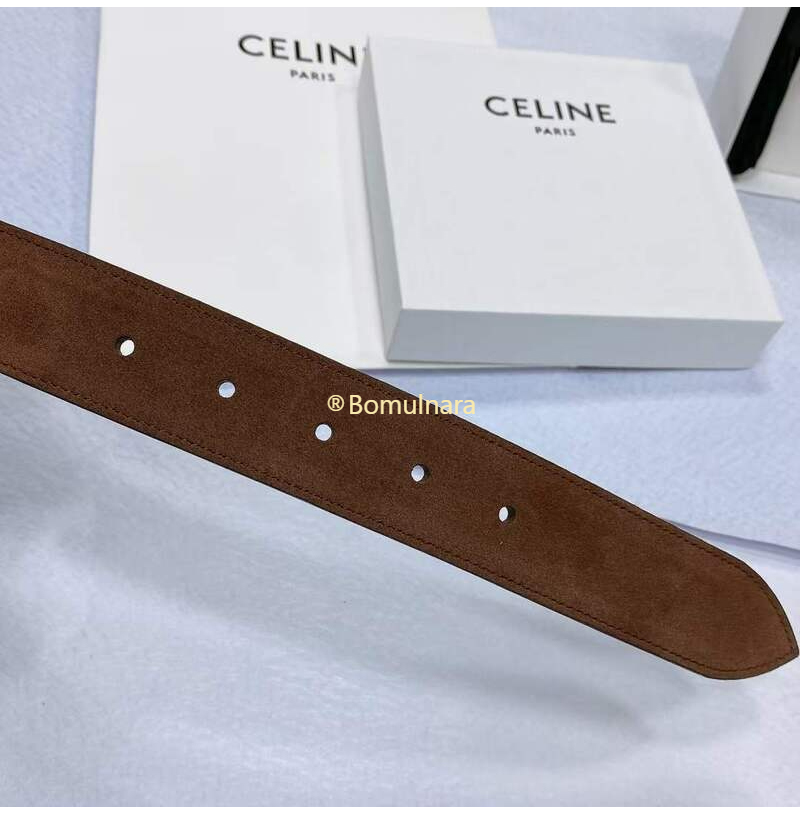 CELINE-45BDZ3 셀린느 브라운 스웨이드 트윈 트리옹프 라지 벨트 35MM 여성용