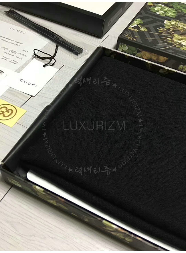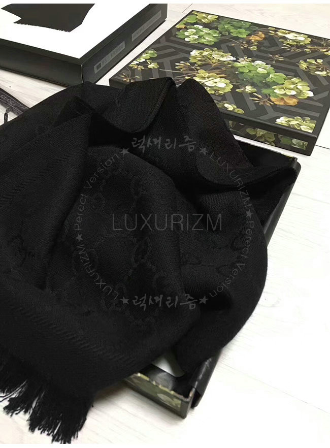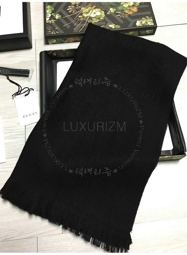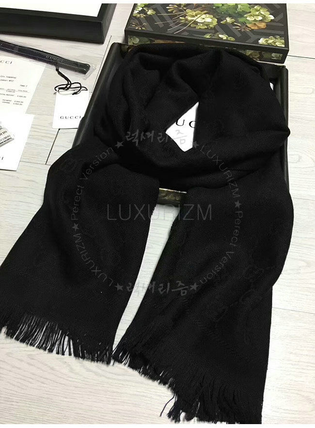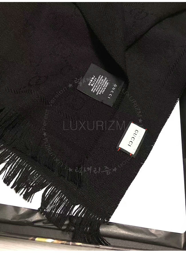 GUCCI-133483 1000 구찌 블랙 자카드 패턴 니트 스카프 여성용