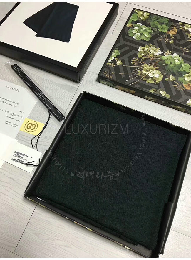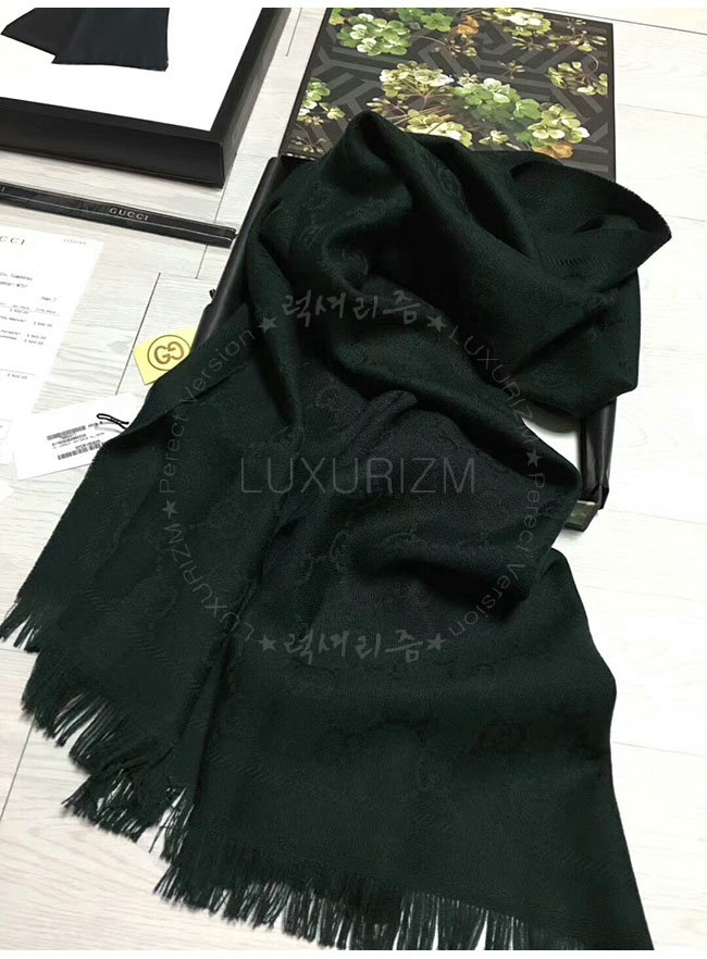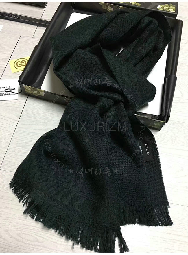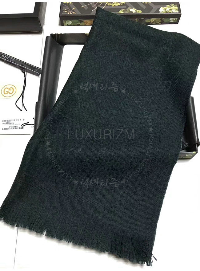 GUCCI-133483 1000 구찌 블랙 자카드 패턴 니트 스카프 여성용