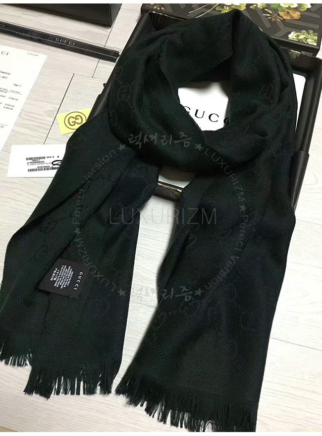 GUCCI-133483 7841 구찌 다크 그린 자카드 패턴 니트 스카프 여성용