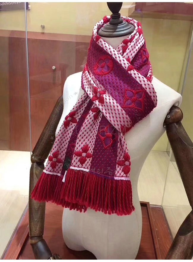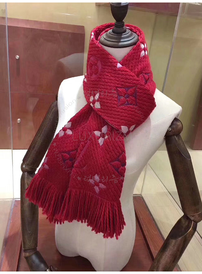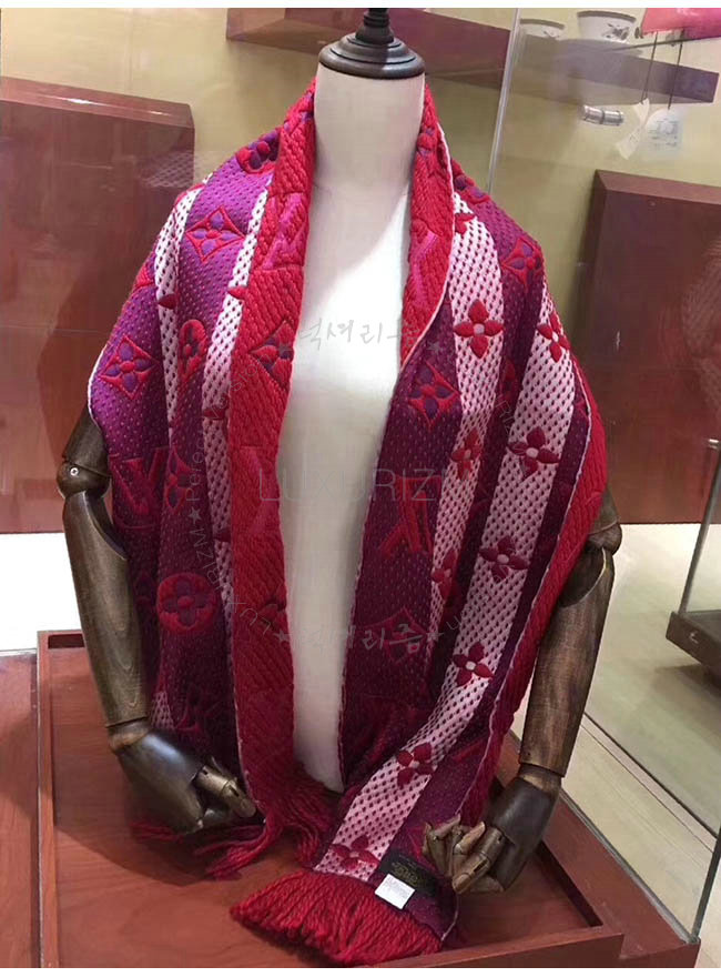 LOUIS VUITTON-M70647 루이비통 로고마니아 레인보우 레드 스카프 여성용