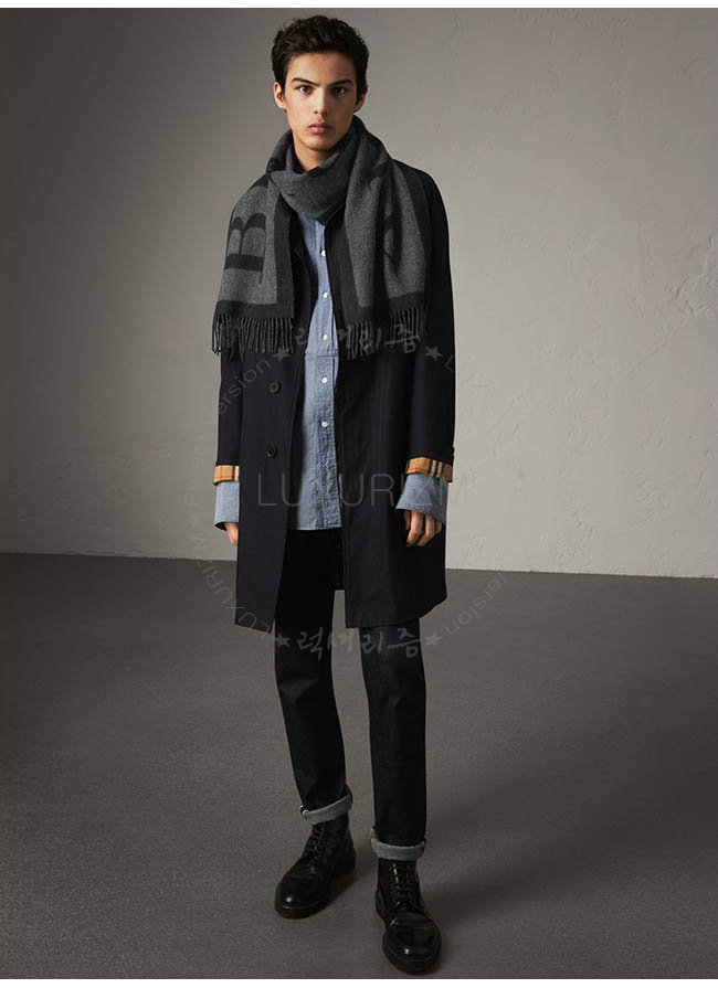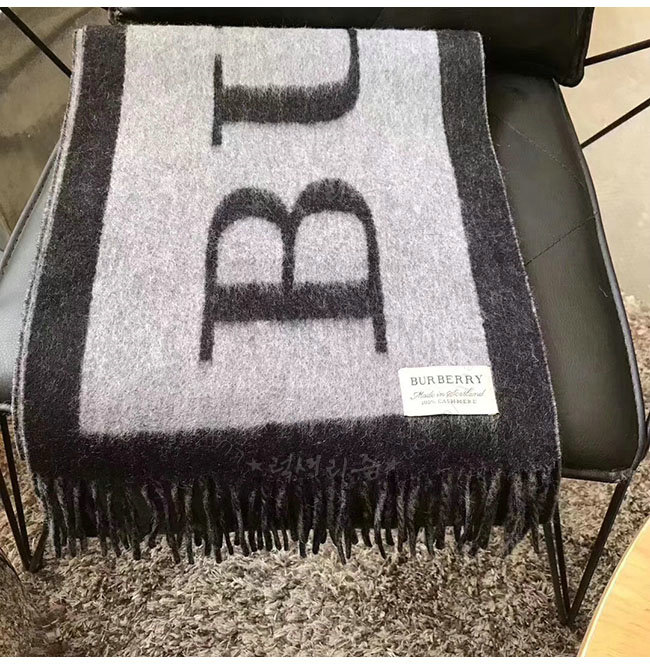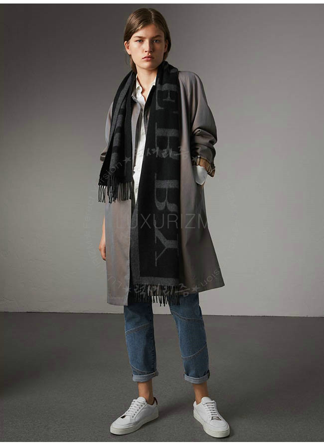 220 BURBERRY-40550921 버버리 블랙 엠블렘 프린트 캐시미어 스카프 남녀공용