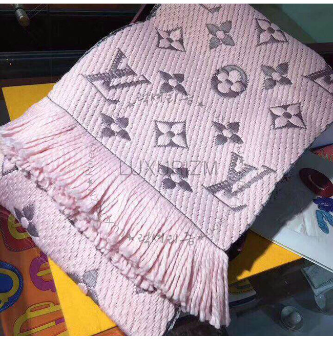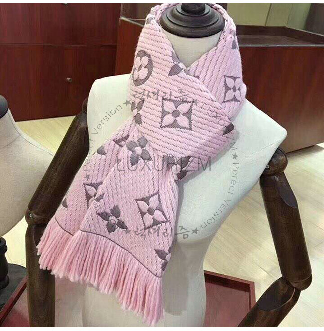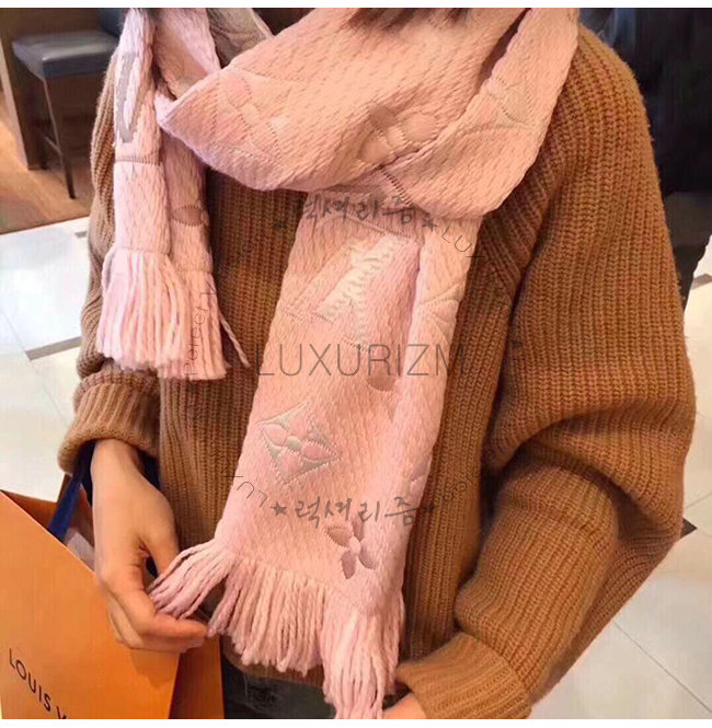 LOUIS VUITTON-M70466 루이비통 핑크 울 로고마니아 샤인 스카프