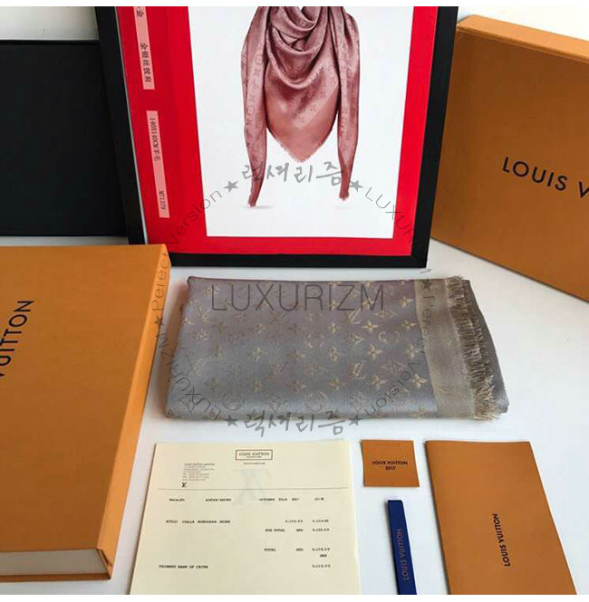 LOUIS VUITTON-M75120 루이비통 그레이 실크 모노그램 샤인 숄 가격 : 210,000원