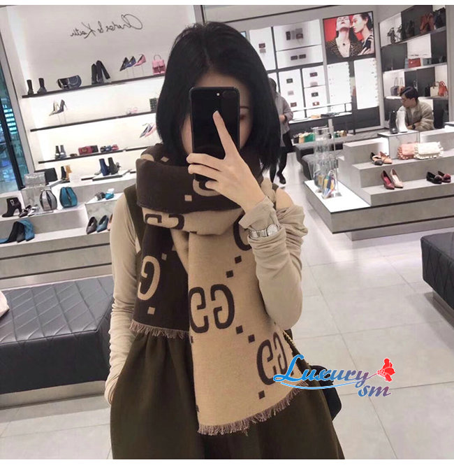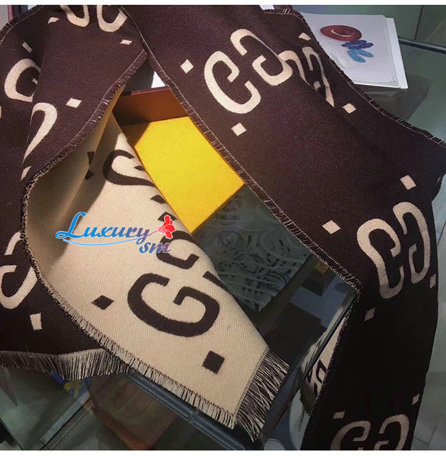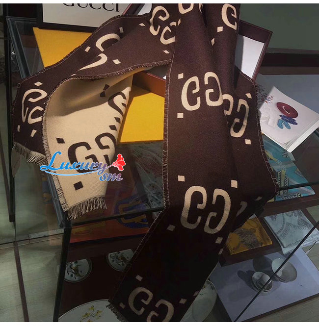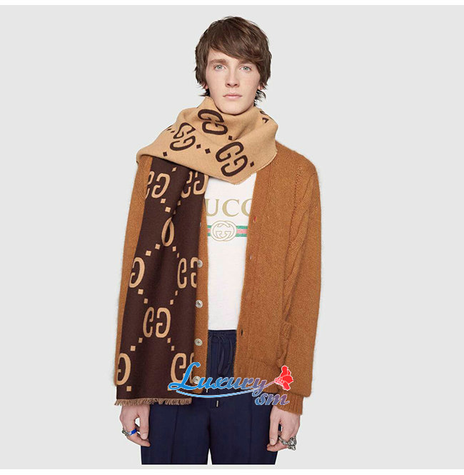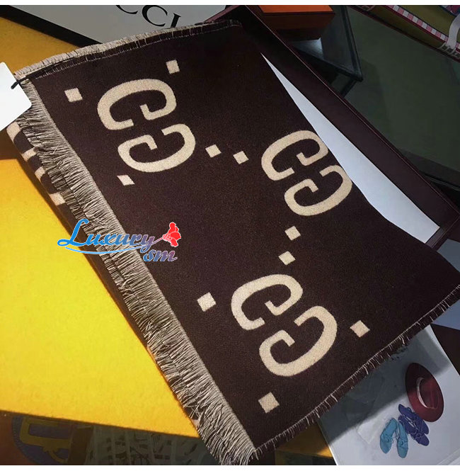 GUCCI-495592 2179 구찌 브라운/베이지 GG 자카드 울 실크 스카프