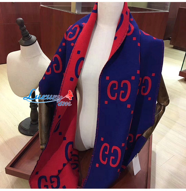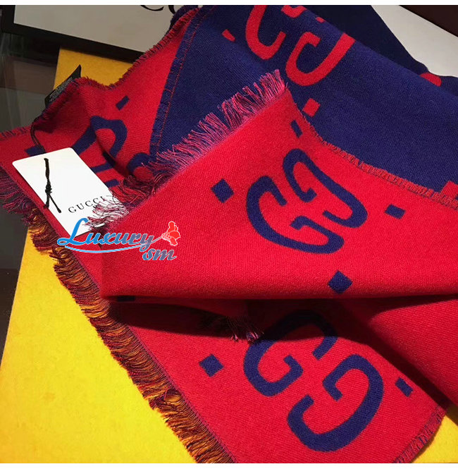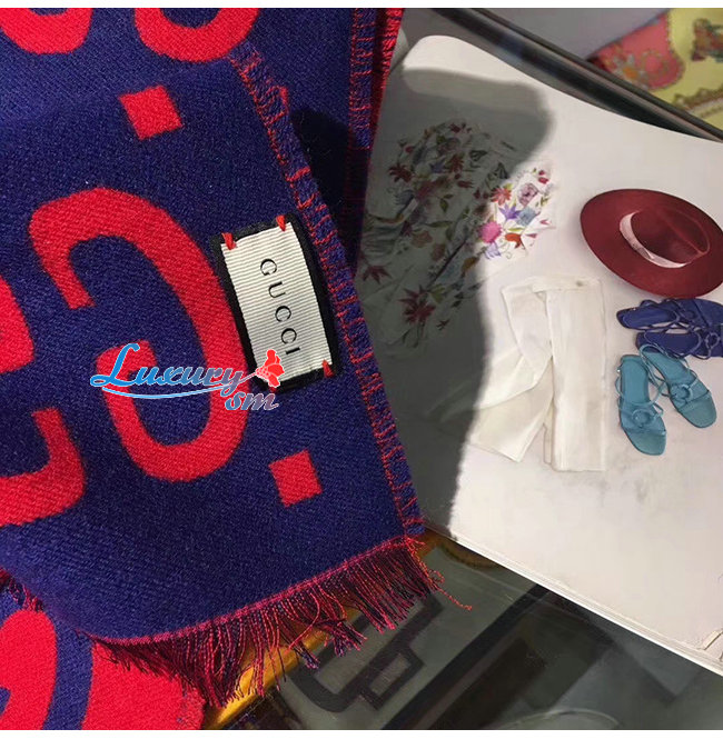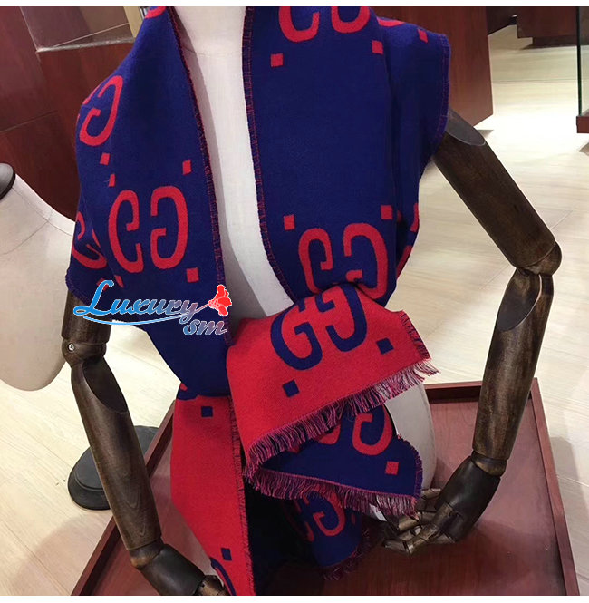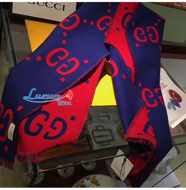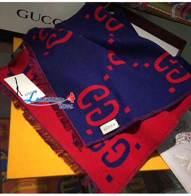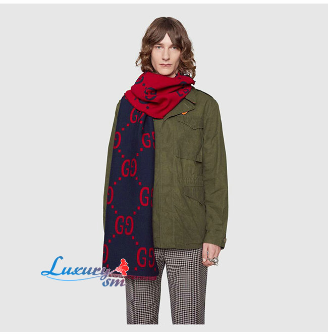 GUCCI-495592 4074 구찌 블루/레드 GG 자카드 울 실크 스카프