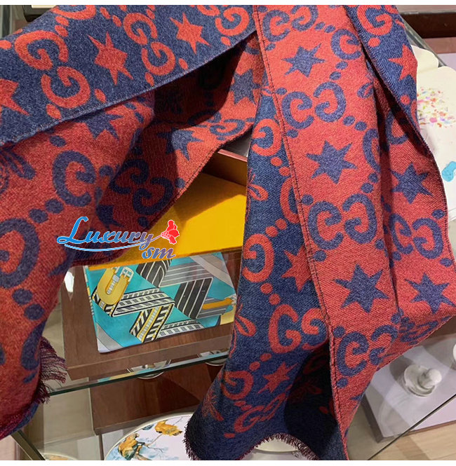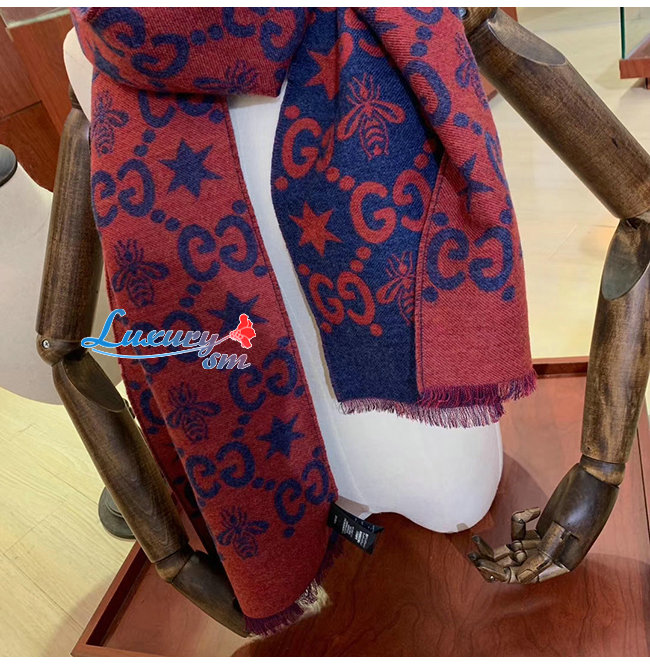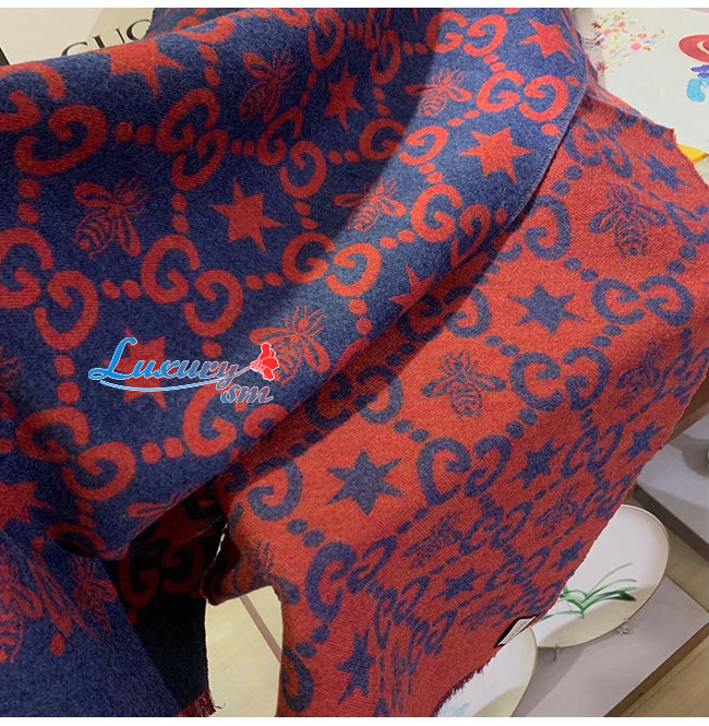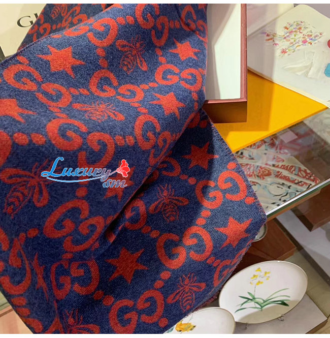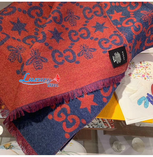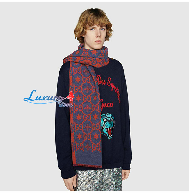 GUCCI-548753 4274 구찌 블루/레드 벌 별 모양 GG 자카드 스카프