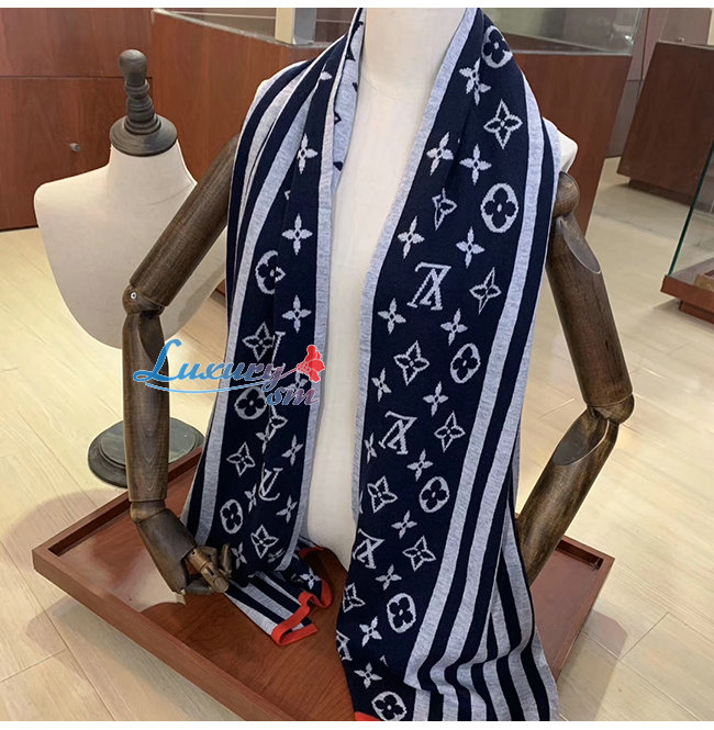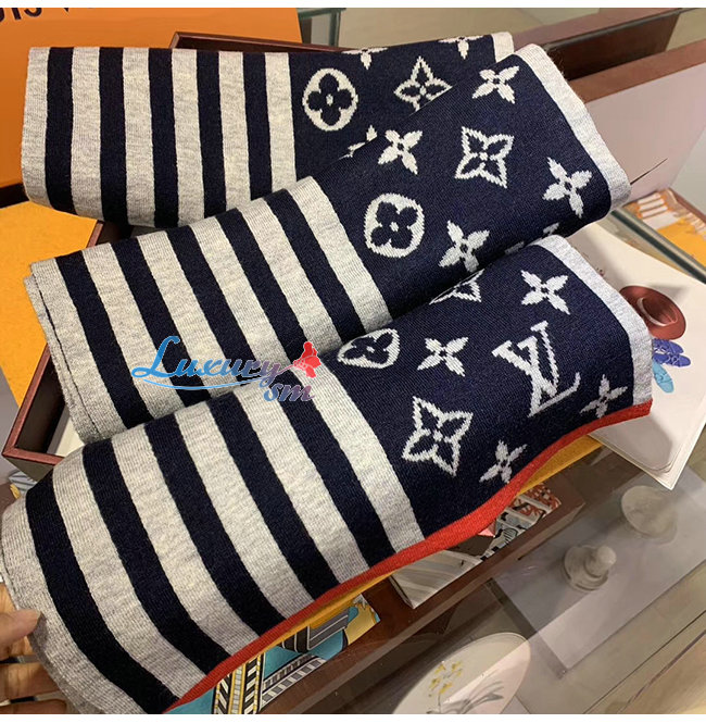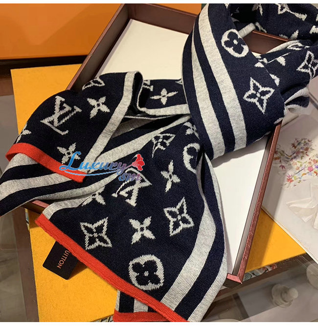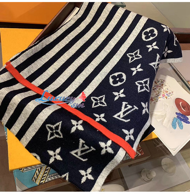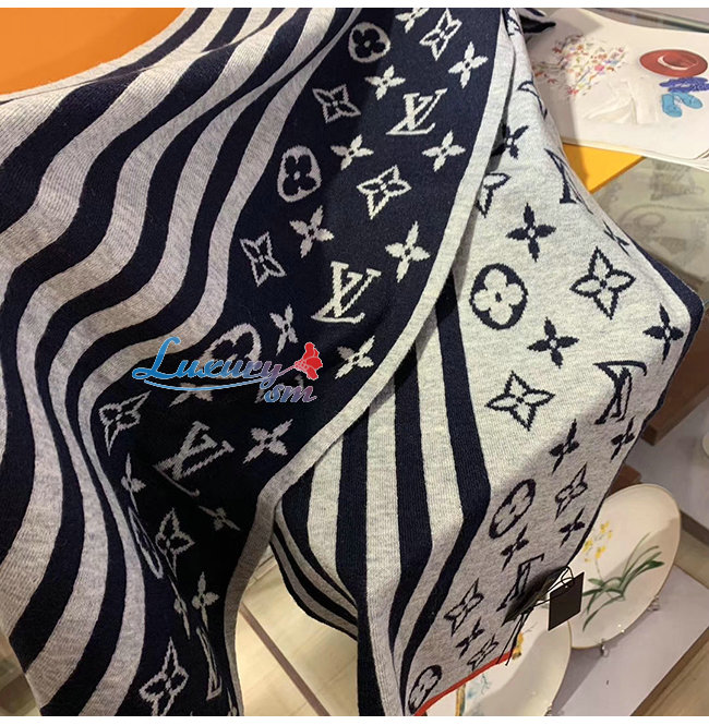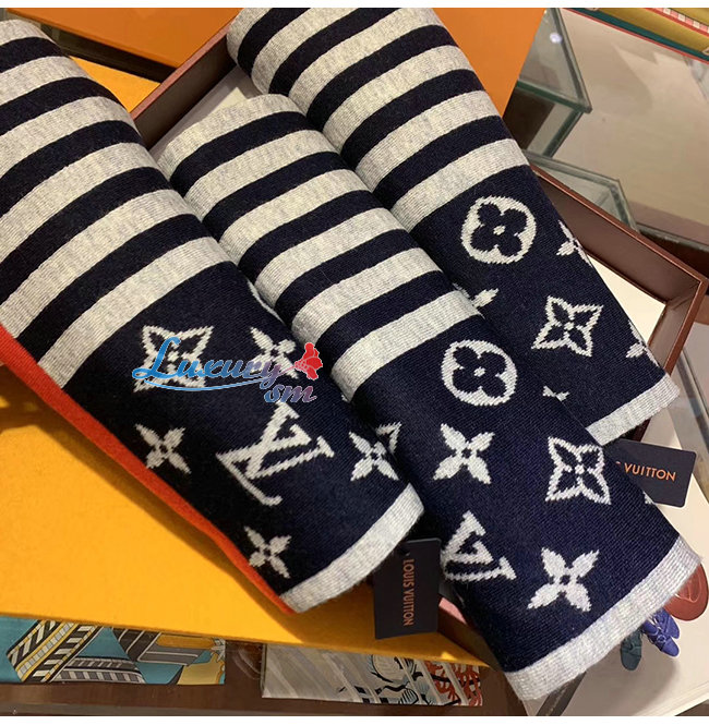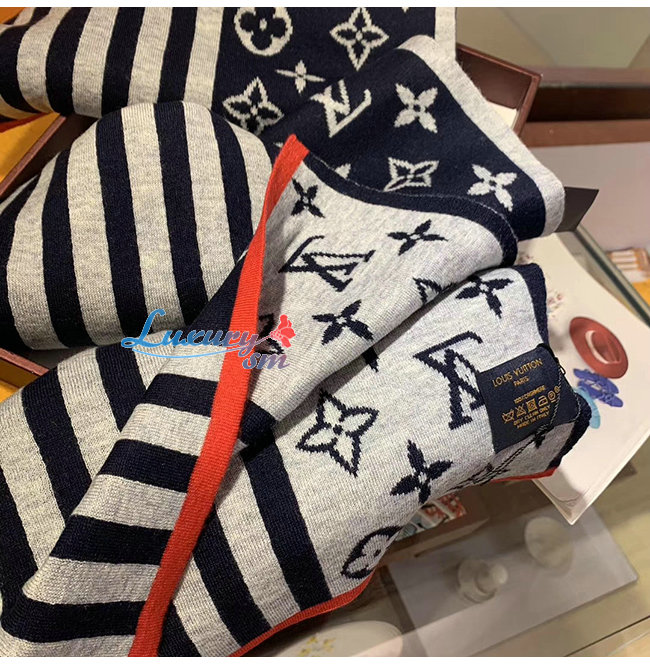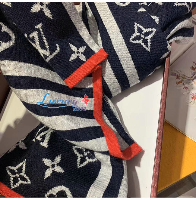 LOUIS VUITTON-M76025 루이비통 네이비 모노그램 스트라이프 니트 스카프