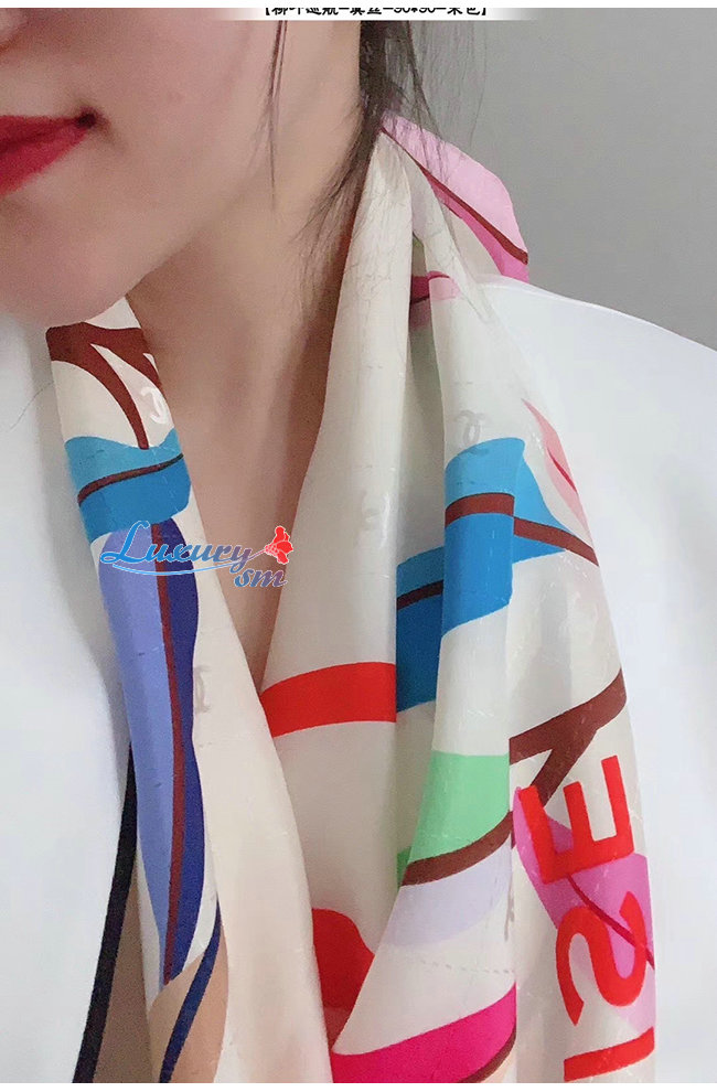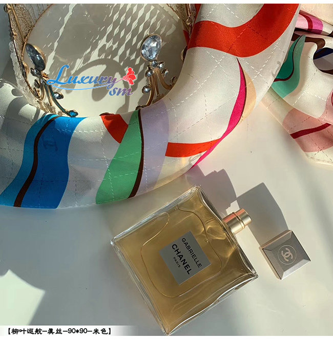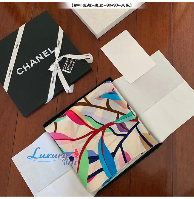 CHANEL-AA6509 샤넬 아이보리 실크 트윌 스퀘어 스카프
