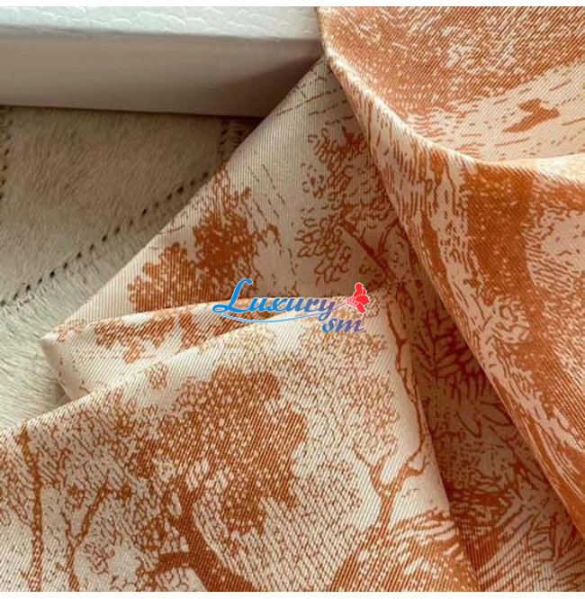 장식된 실크 트윌 스퀘어 스카프입니다.