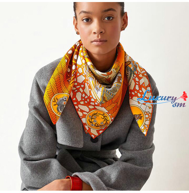 HERMES-H003535S 에르메스 오렌지 La Danse des Amazones 스카프