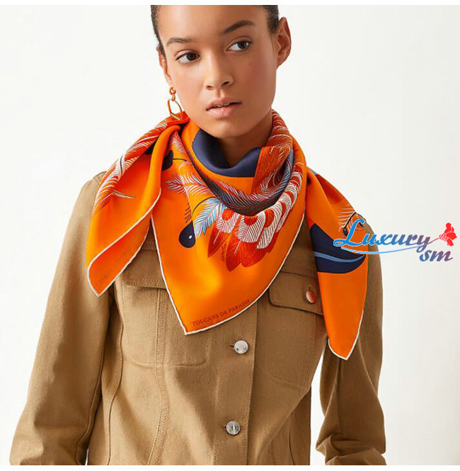 HERMES-H003560S 에르메스 오렌지 Toucans de Paradis 스카프