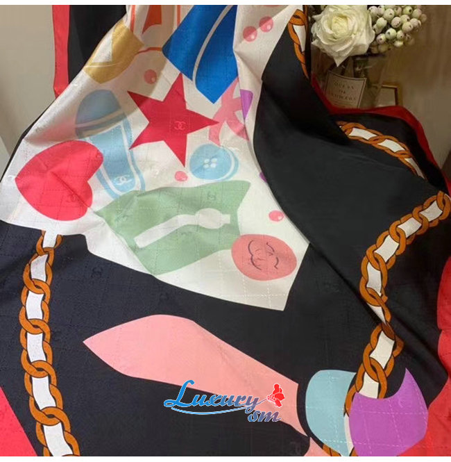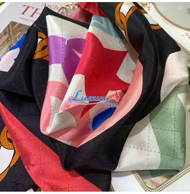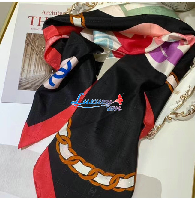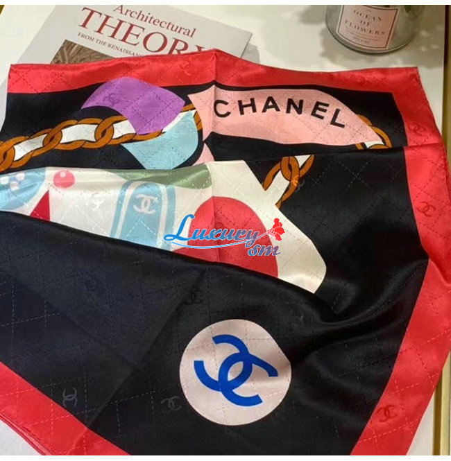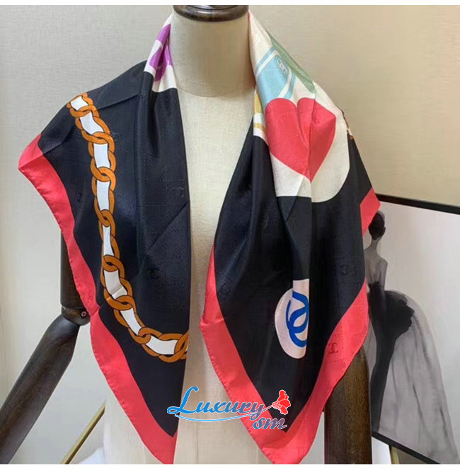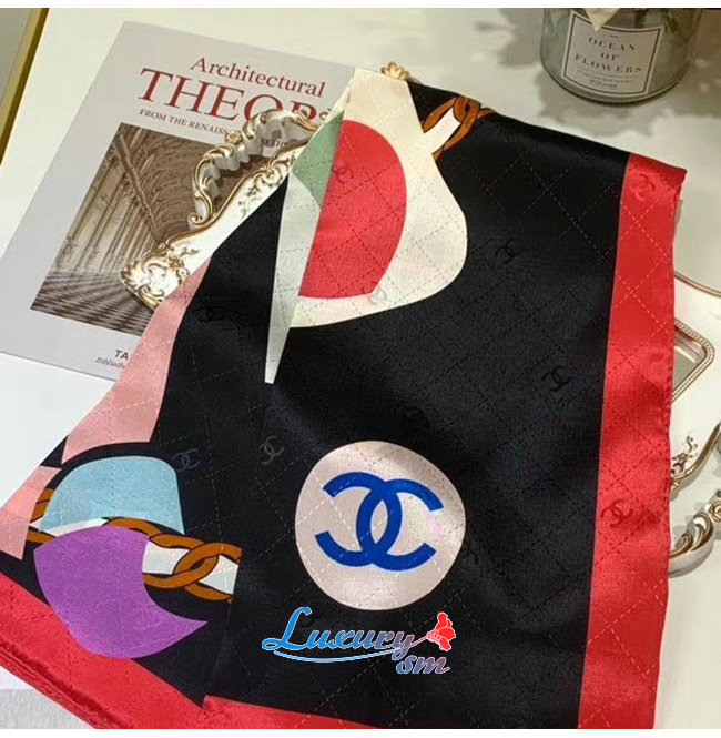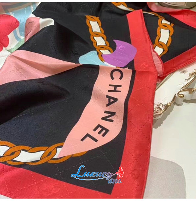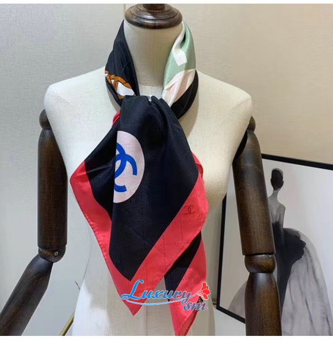 CHANEL-AA7369 샤넬 레드/블랙/에크루 실크 트윌 스퀘어 스카프