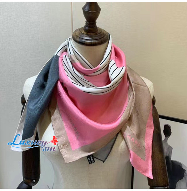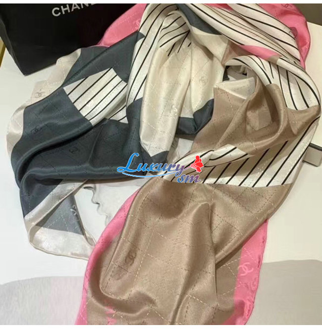 CHANEL-AA7364 샤넬 핑크/그레이/베이지 실크 트윌 스퀘어 스카프