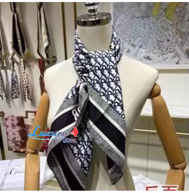 DIOR-15DOB09 디올 그레이/네이비 DIORTWIN DIOR OBLIQUE 스퀘어 스카프