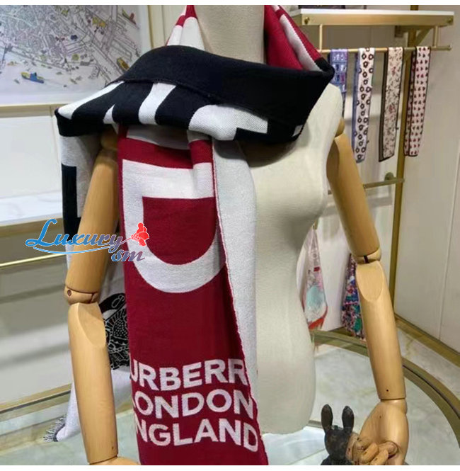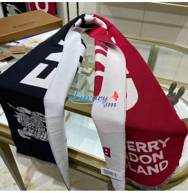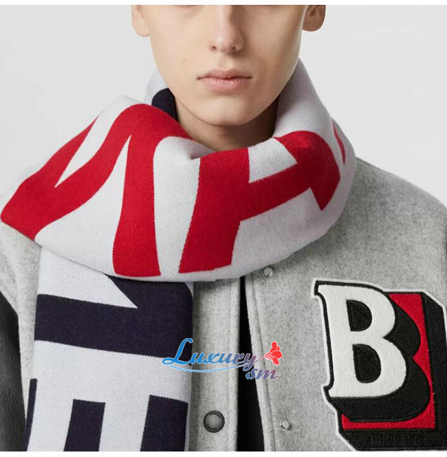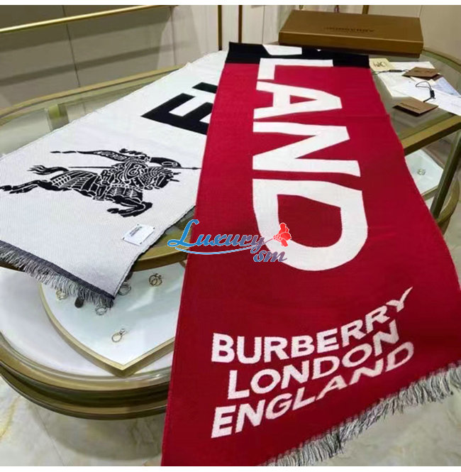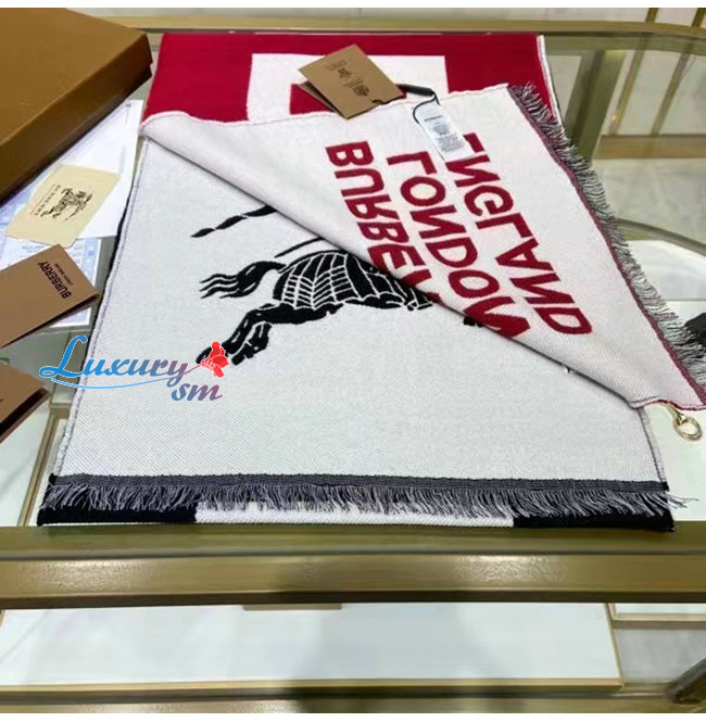 BURBERRY-80594311 버버리 레드 몽타주 울 실크 자카드 스카프