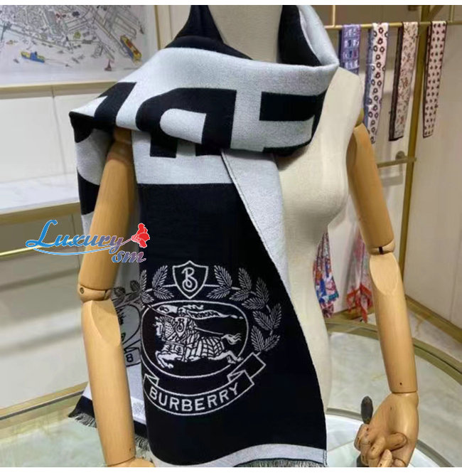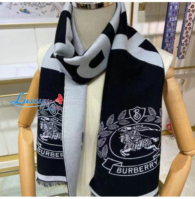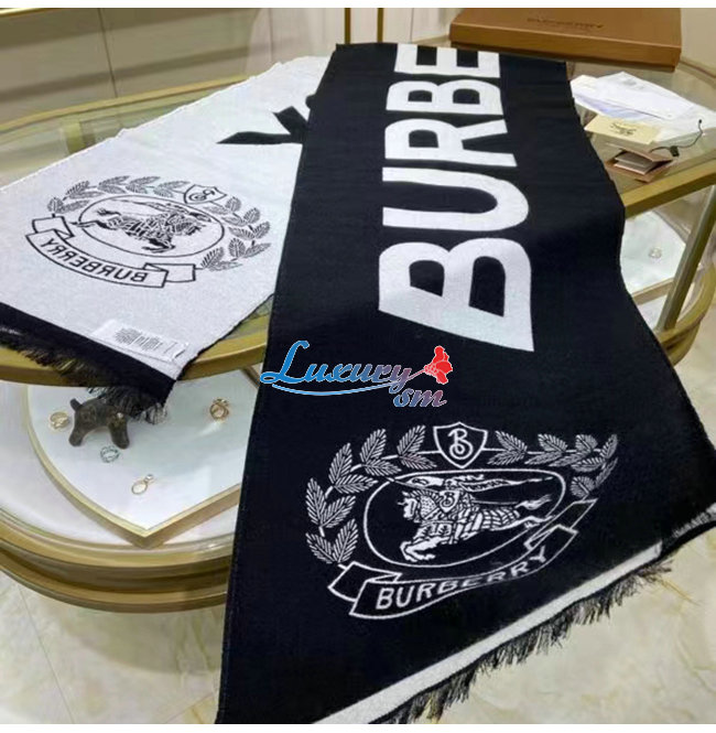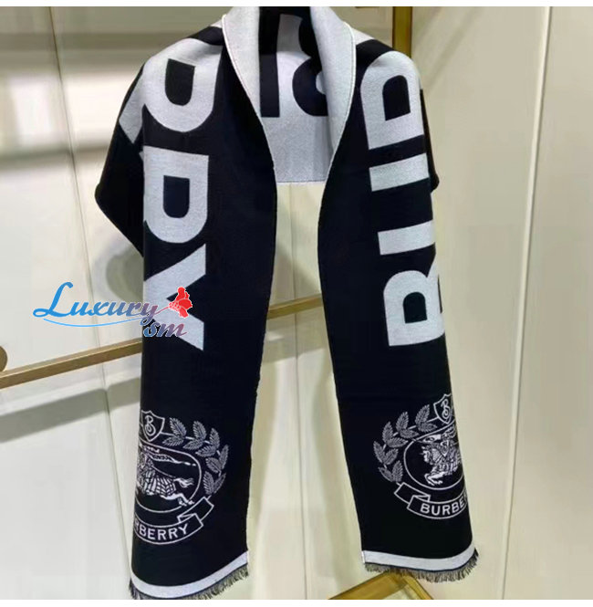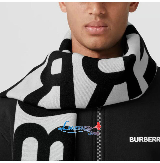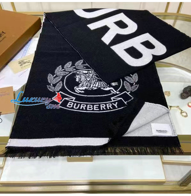 BURBERRY-80609661 버버리 블랙 로고 EKD 울 실크 자카드 스카프