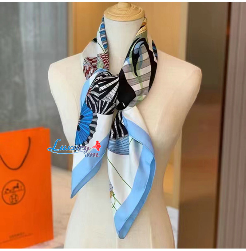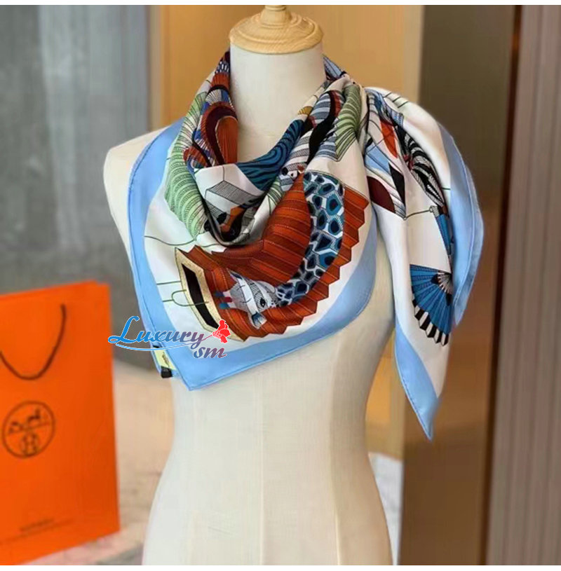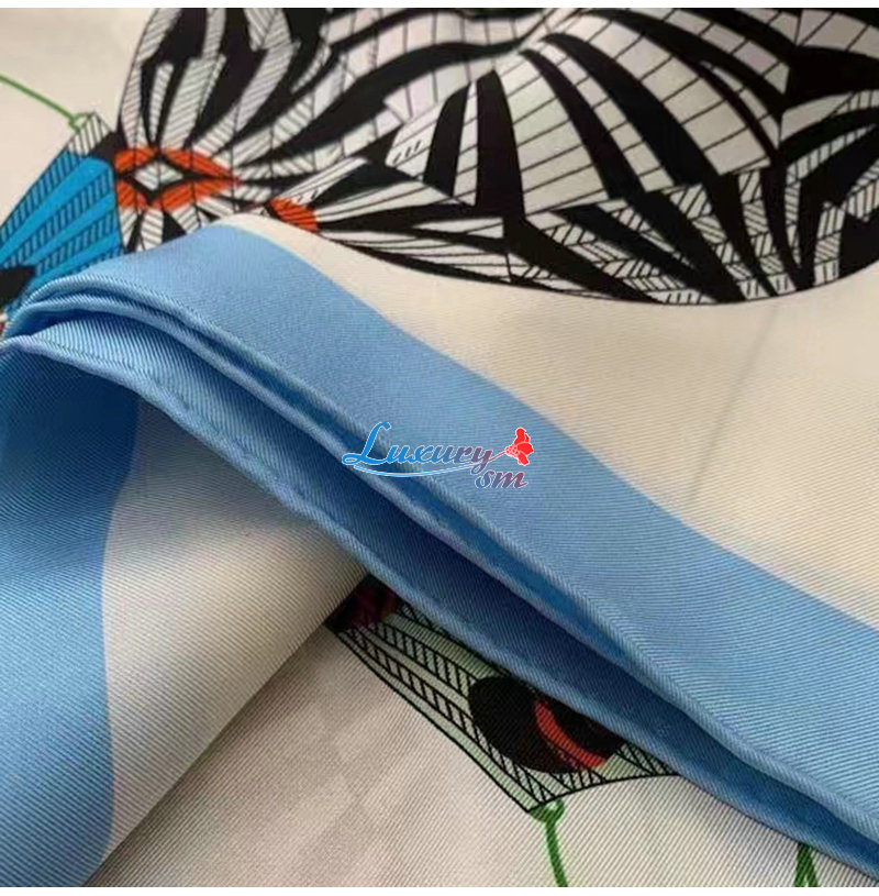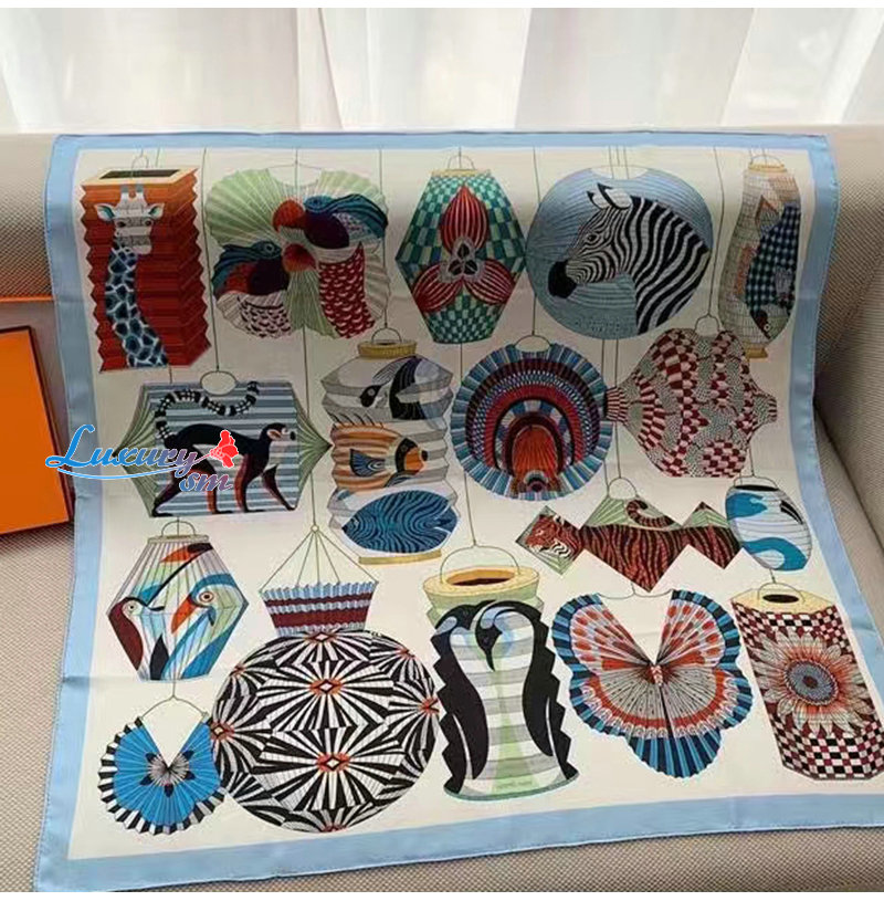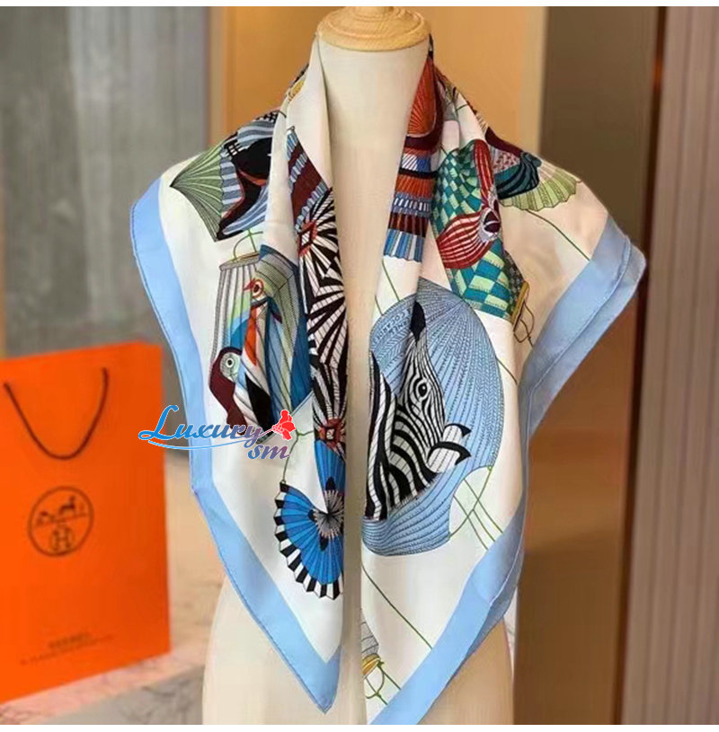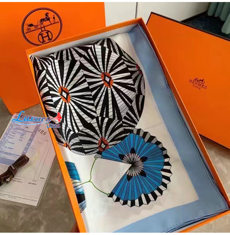 HERMES-H003918 에르메스 블루 Lanternes, Ballons et Cocardes 스카프