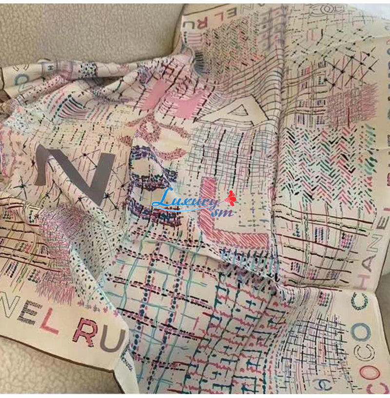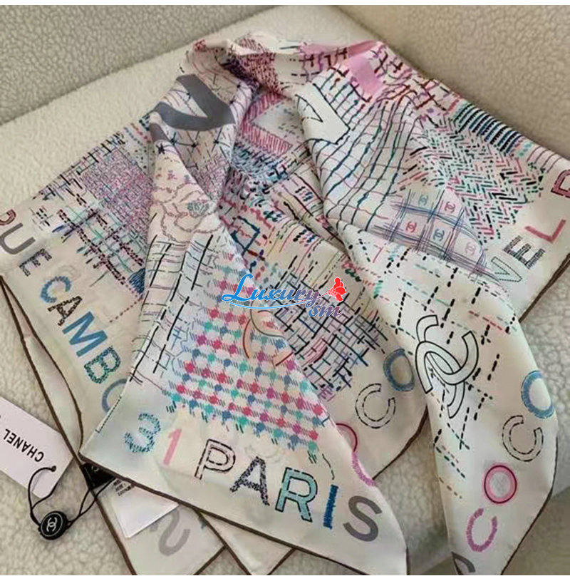 CHANEL-AA8619 샤넬 에크루 실크 트윌 스퀘어 스카프