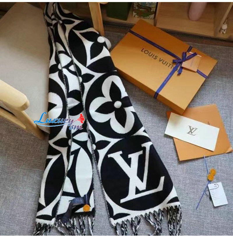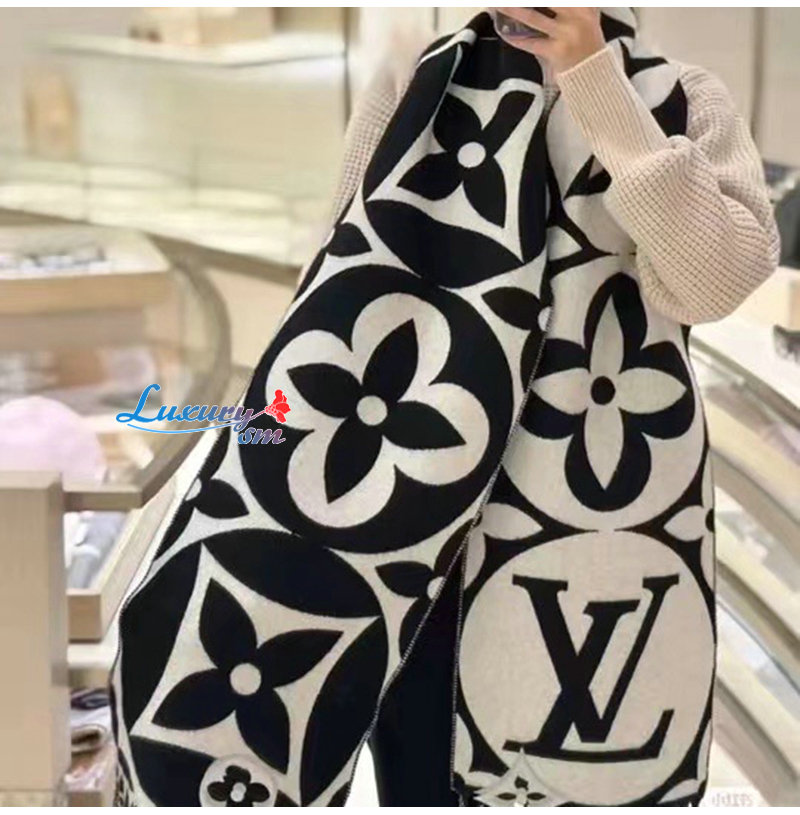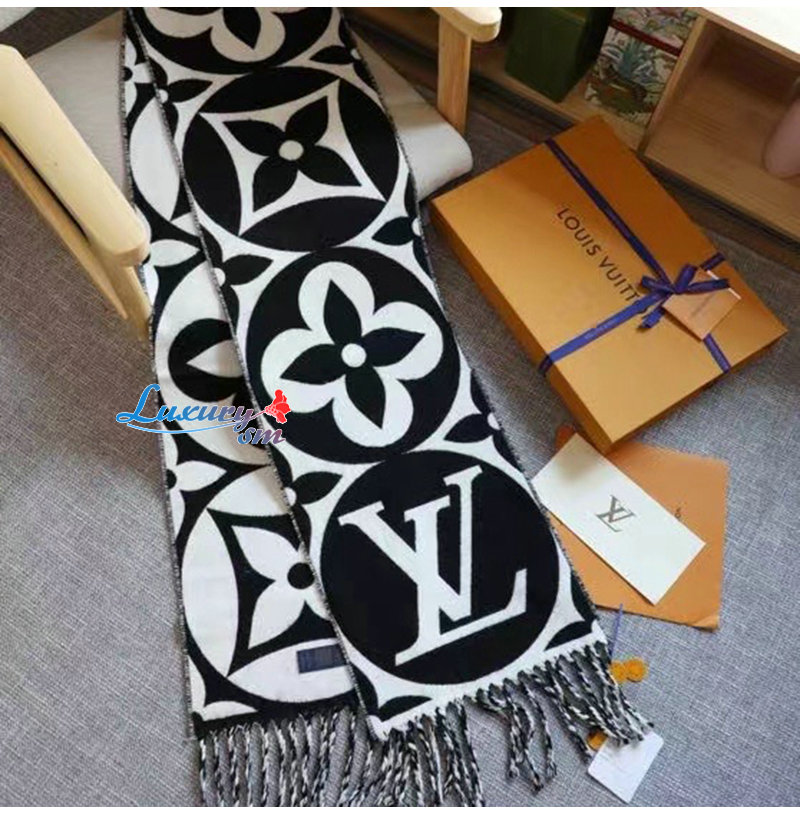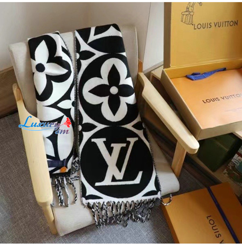 LOUIS VUITTON-09244 루이비통 블랙 모노그램 플라워 울 스카프