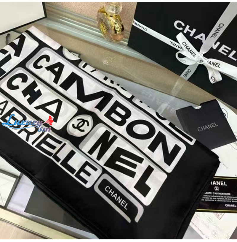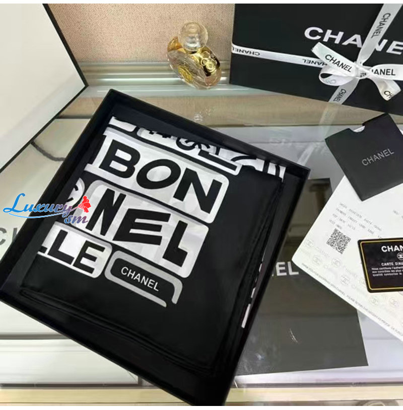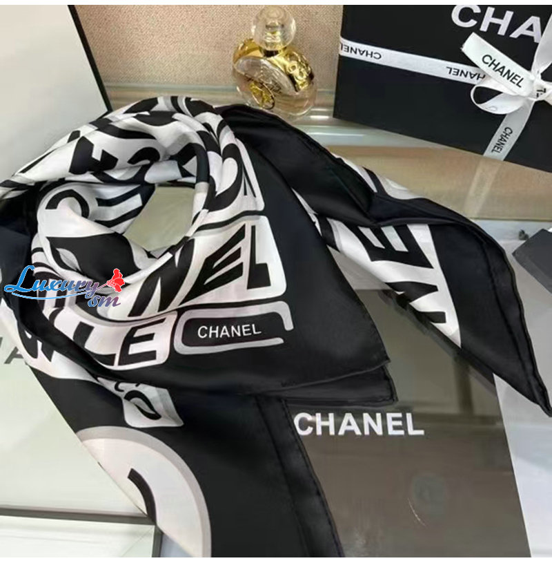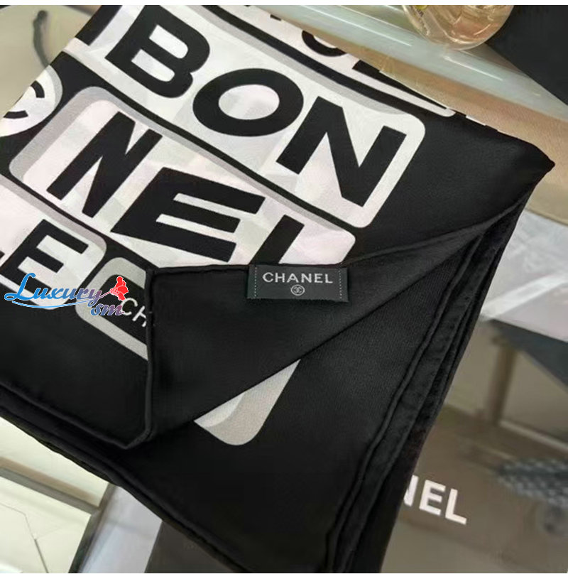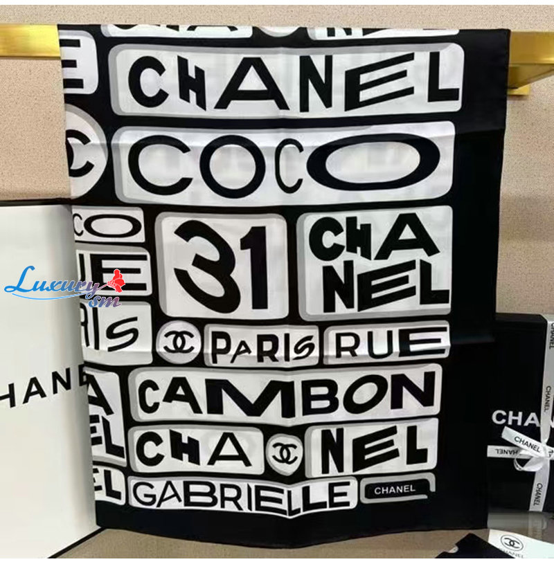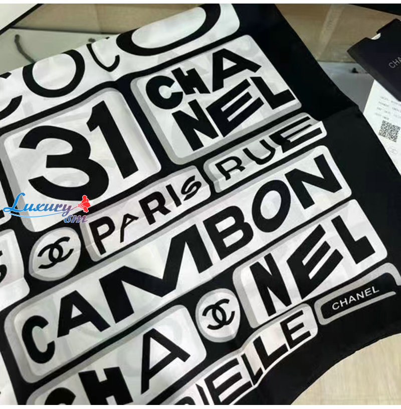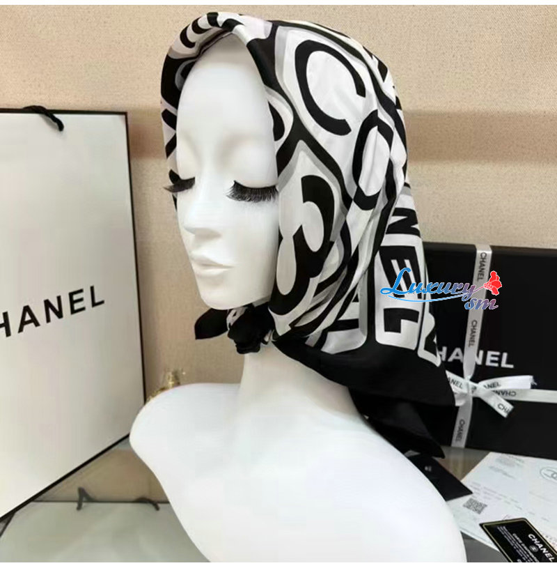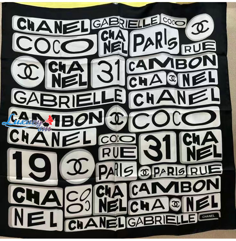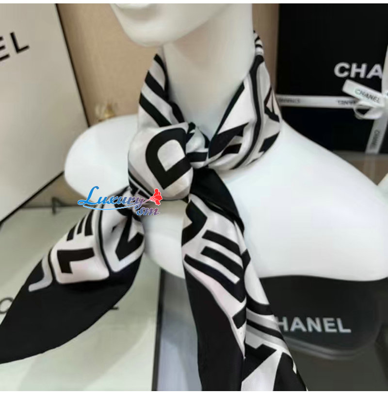 CHANEL-02202 샤넬 블랙/화이트 실크 스카프