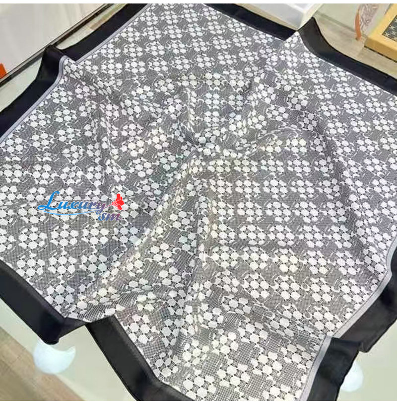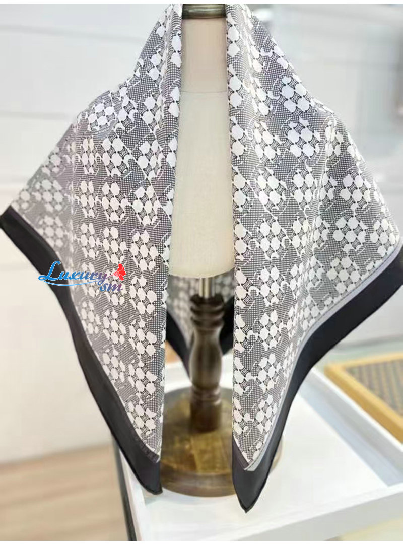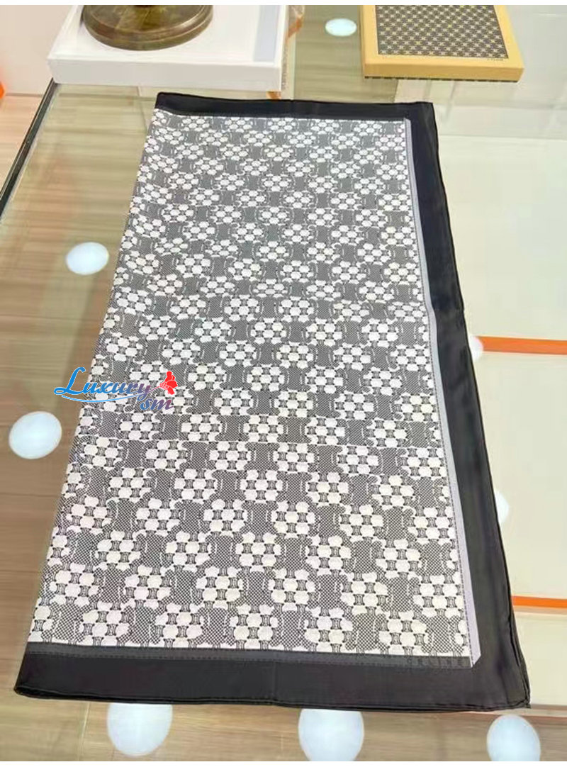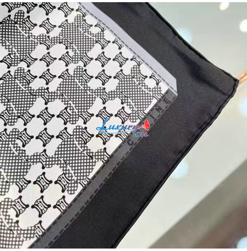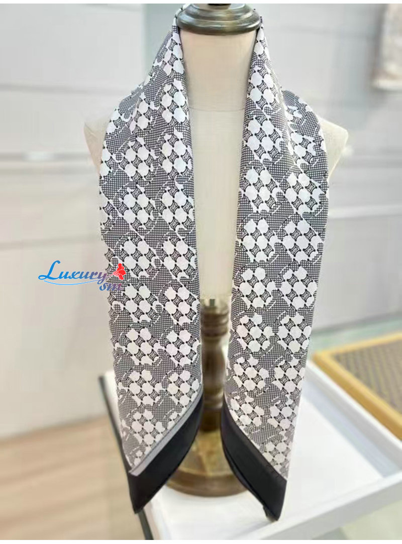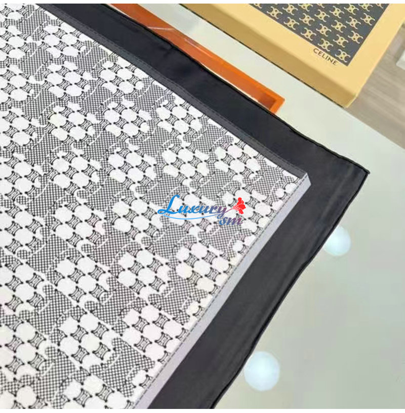 CELINE-02205 셀린느 블랙/화이트 트리옹프 실크 스카프