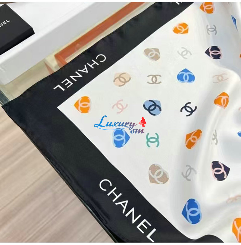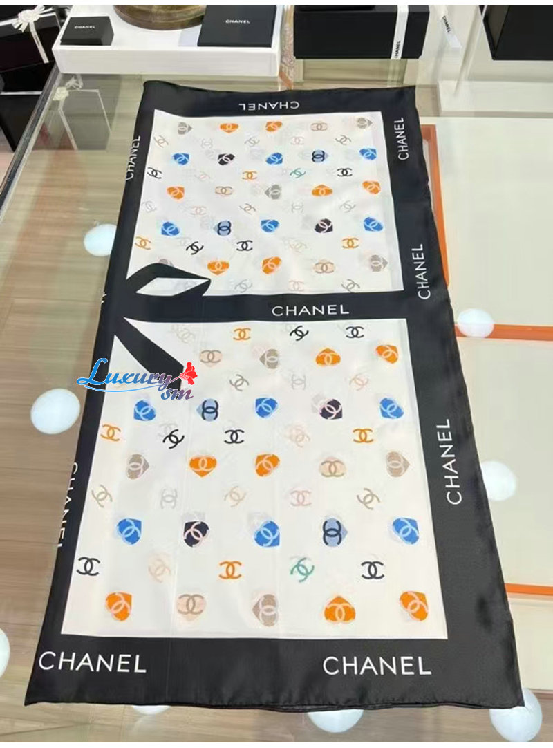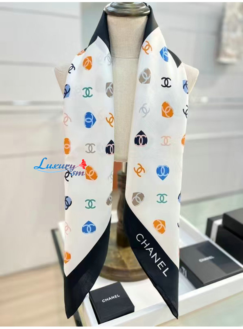 CHANEL-02208 샤넬 화이트 CC 로고 실크 스카프