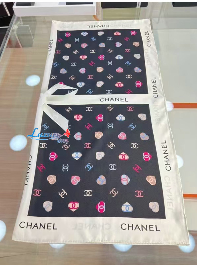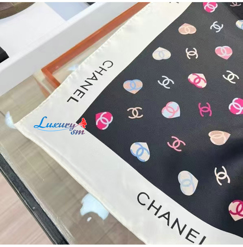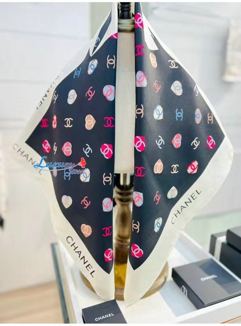 CHANEL-022010 샤넬 블랙 CC 로고 실크 스카프