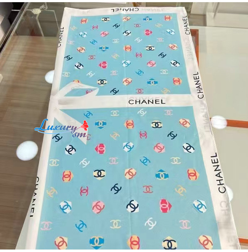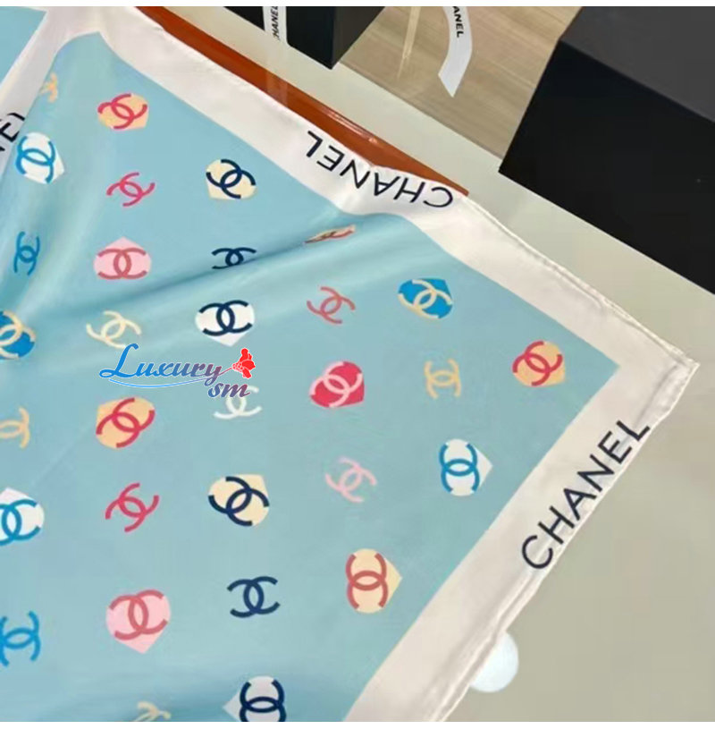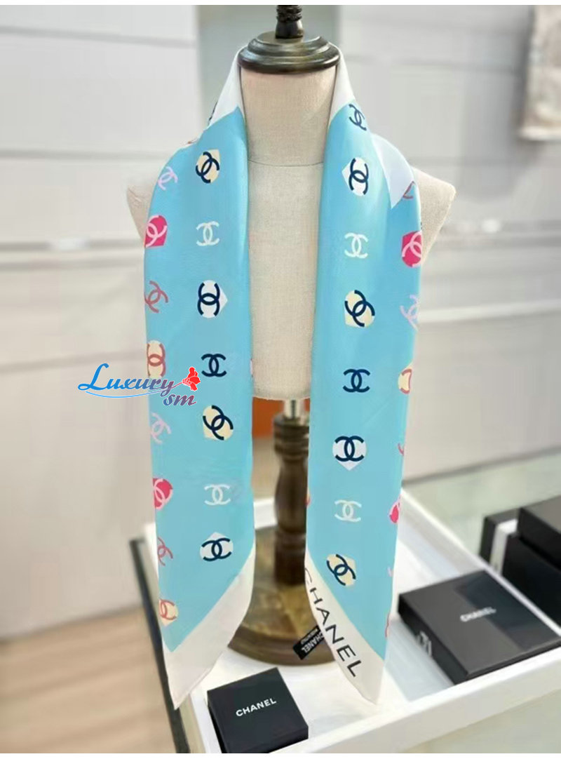 CHANEL-022011 샤넬 라이트 블루 CC 로고 실크 스카프