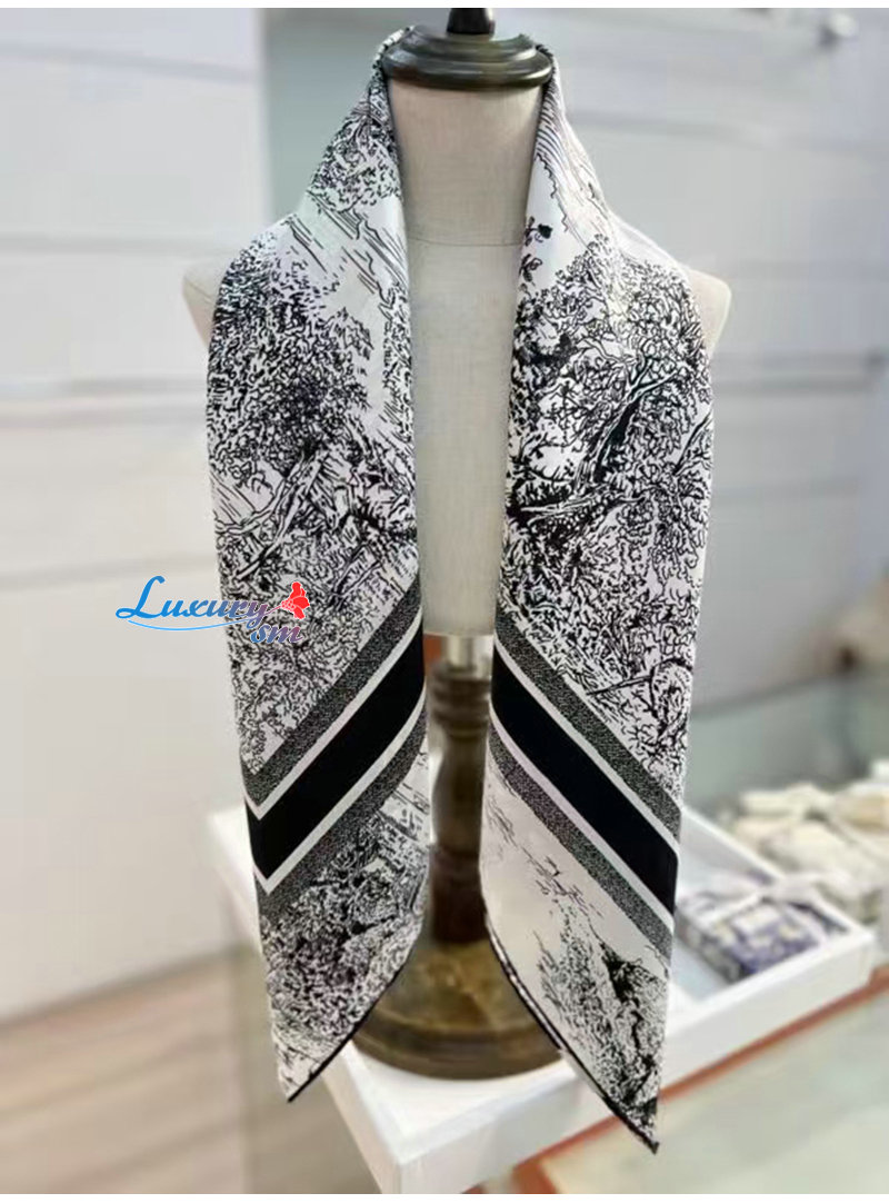 DIOR-51SCO0 디올 블랙 Toile de Jouy Scotland 90 스퀘어 스카프