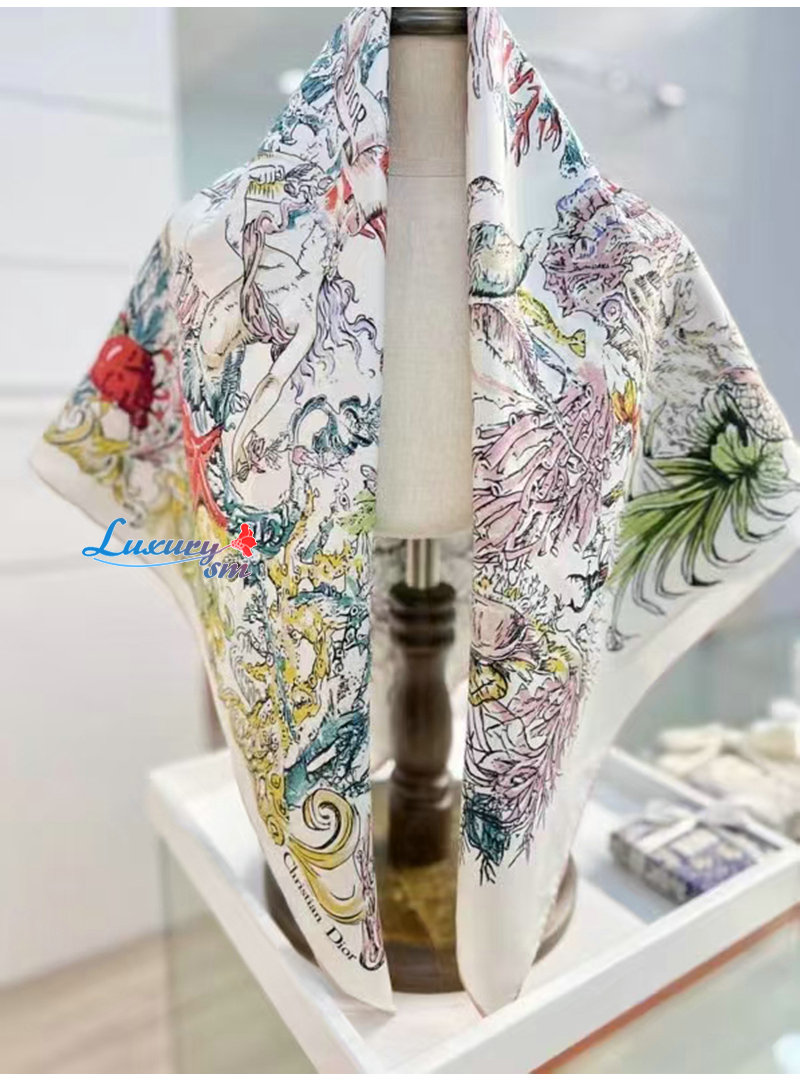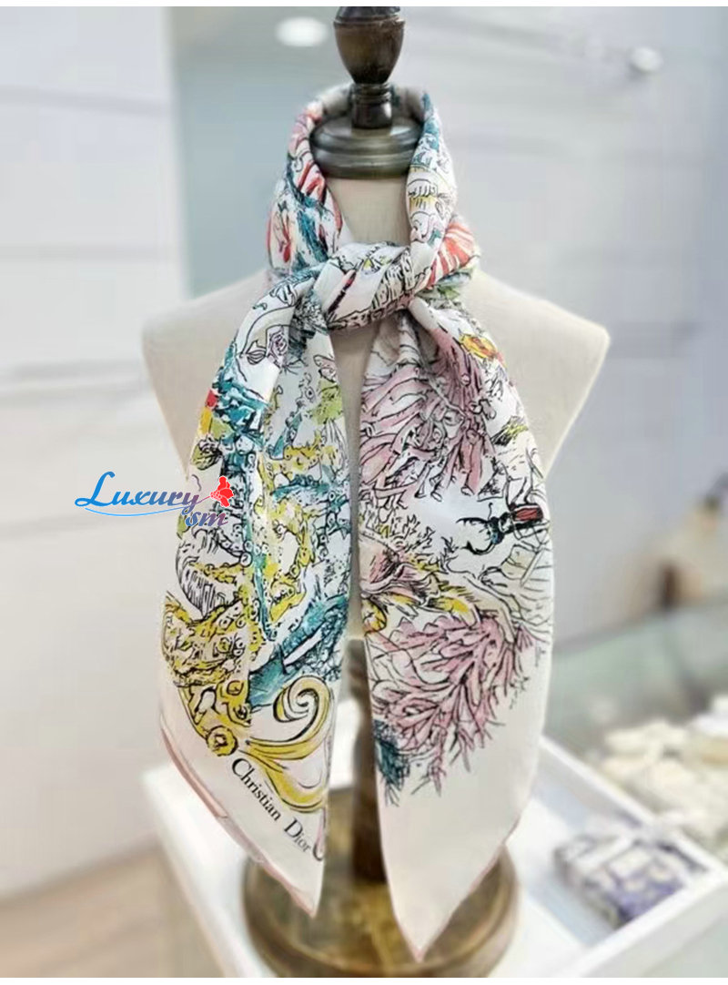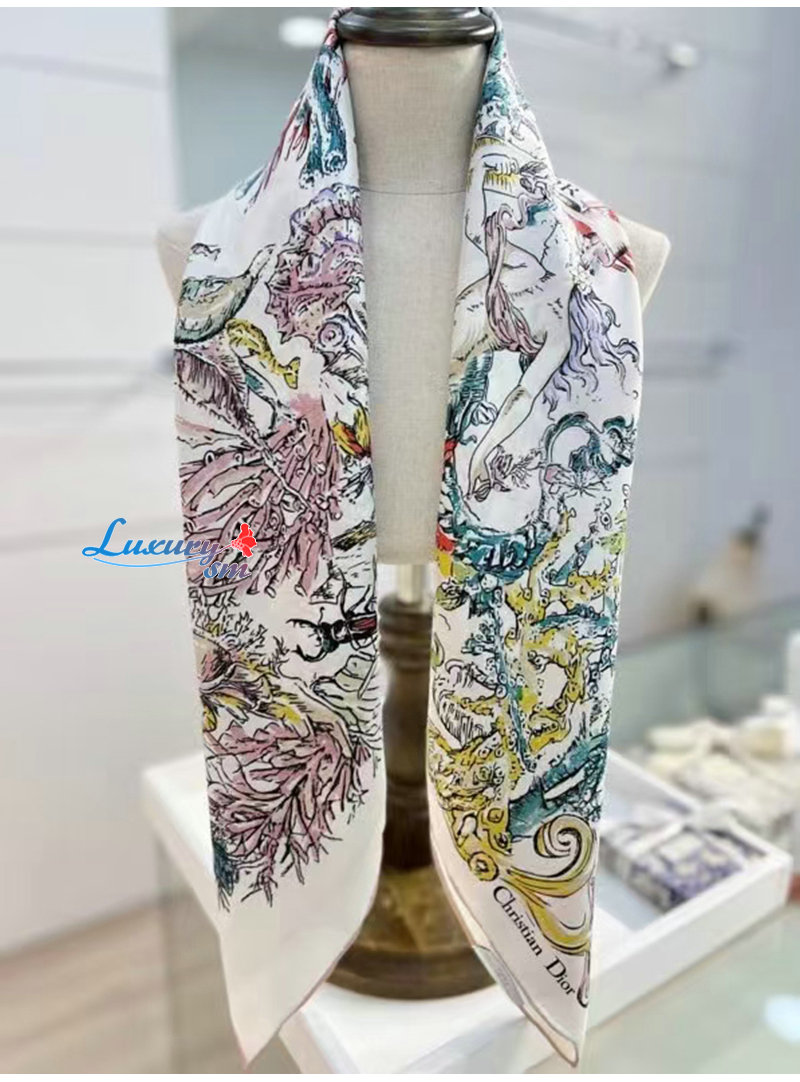DIOR-51CAM0 디올 아이보리 Dior Cabinet de la Mer 90 스퀘어 스카프