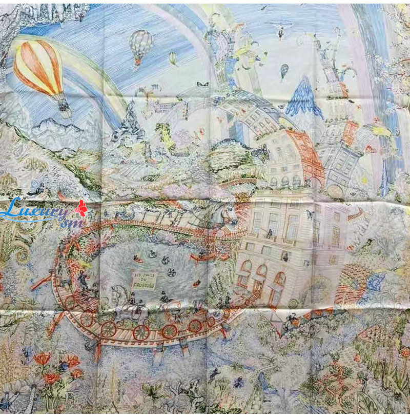 HERMES-H004147S 에르메스 블루 Les Folies du Faubourg 스카프