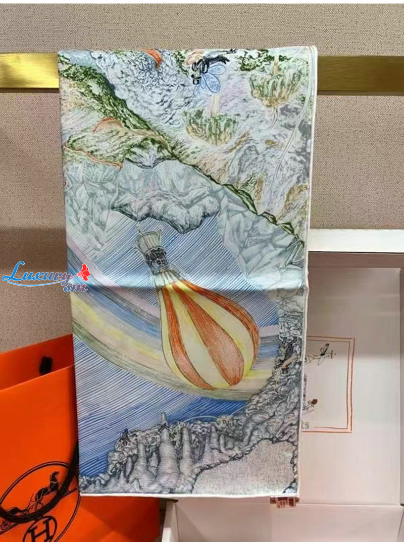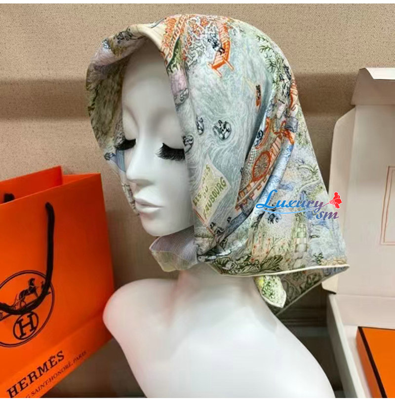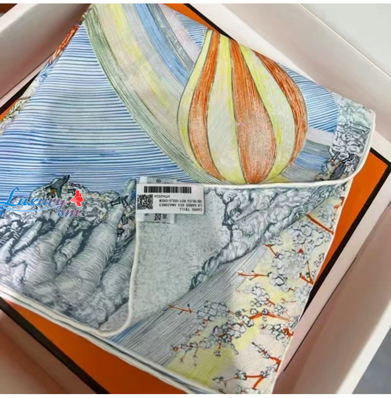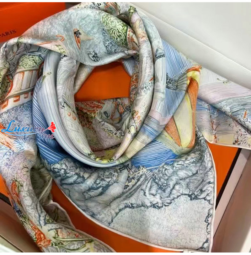 HERMES-H004147S 에르메스 블루/화이트 Les Folies du Faubourg 스카프